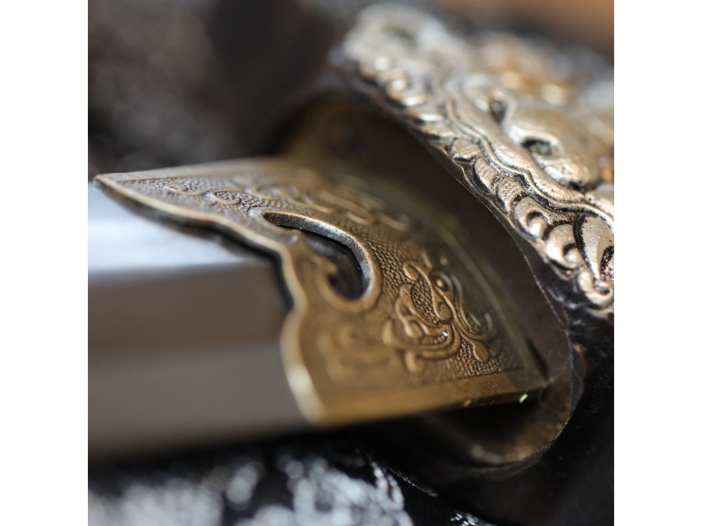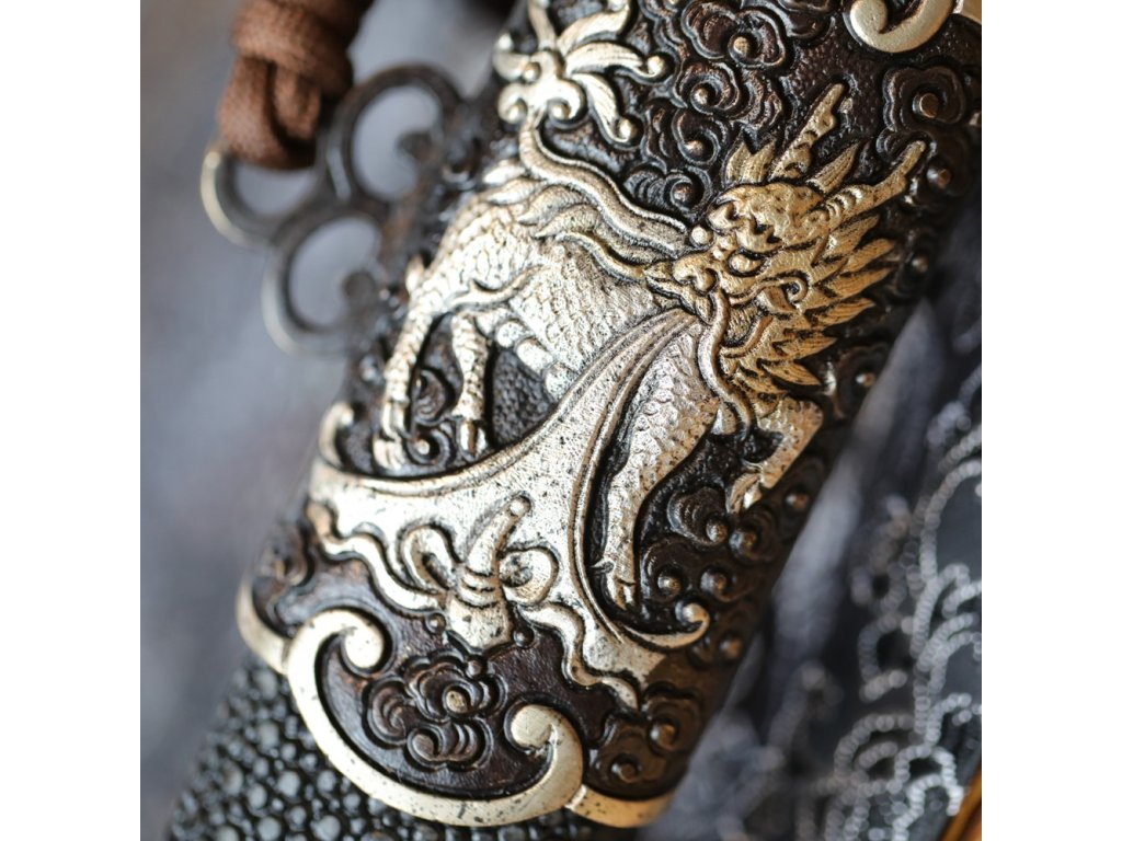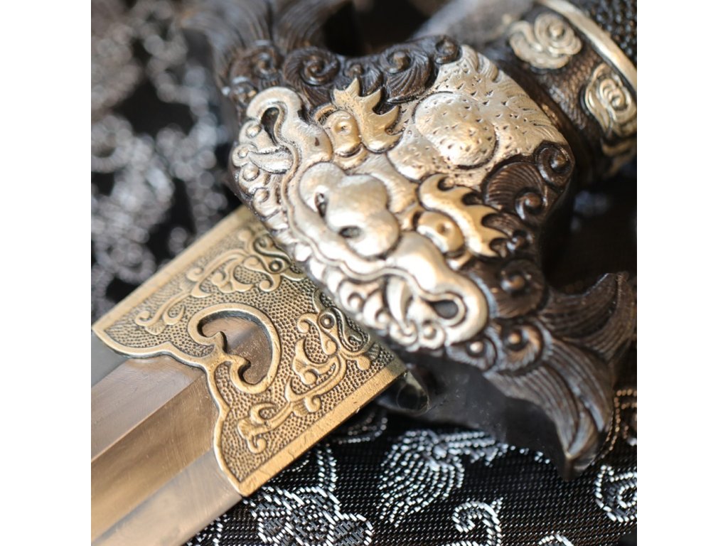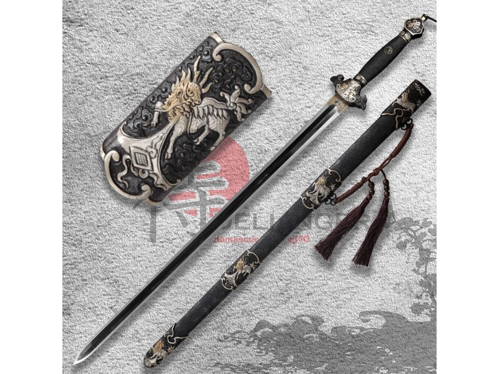 Čínský meč dynastie Ming & Real Sword & překládaná (damascus feather) ocel AISI 1095 a AISI 1060