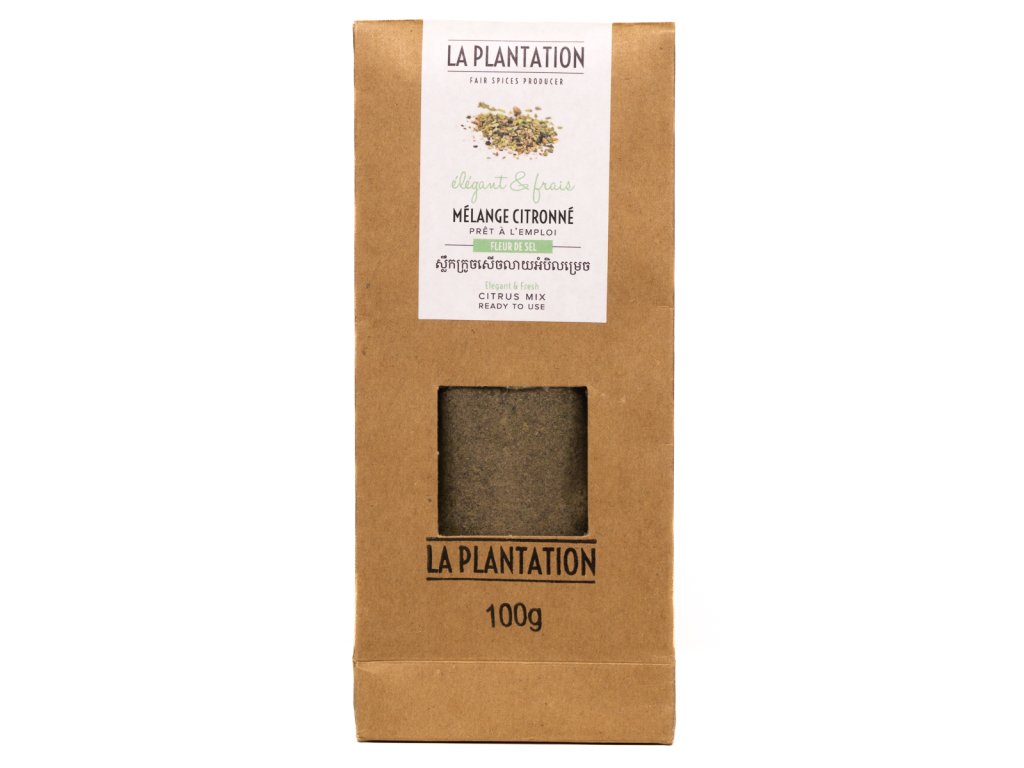 Originální směs soli a koření (Fleur de Sel, listy limetky a černý Kampot). Větší, ekonomické balení v papírovém sáčku z recyklovaného papíru, které lze použít i jako skvělý dárek!.