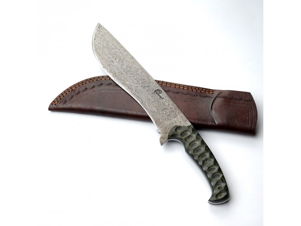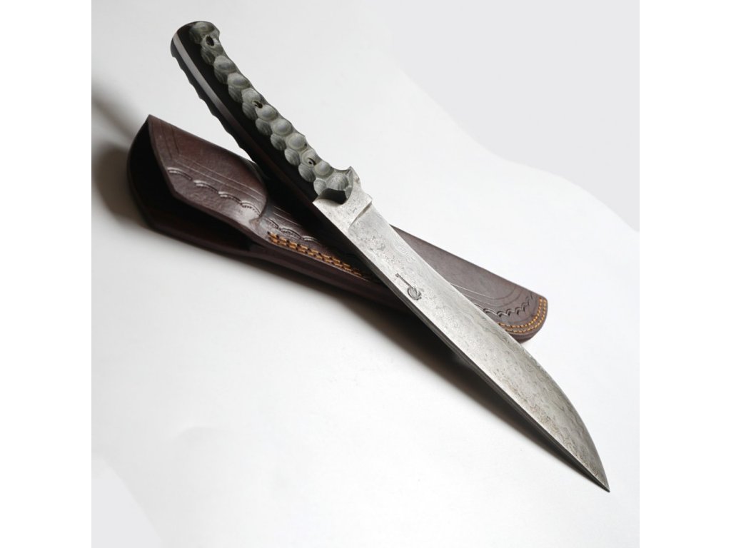 Ručně kovaná mačeta z damaškové oceli s rukojetí z mikarty