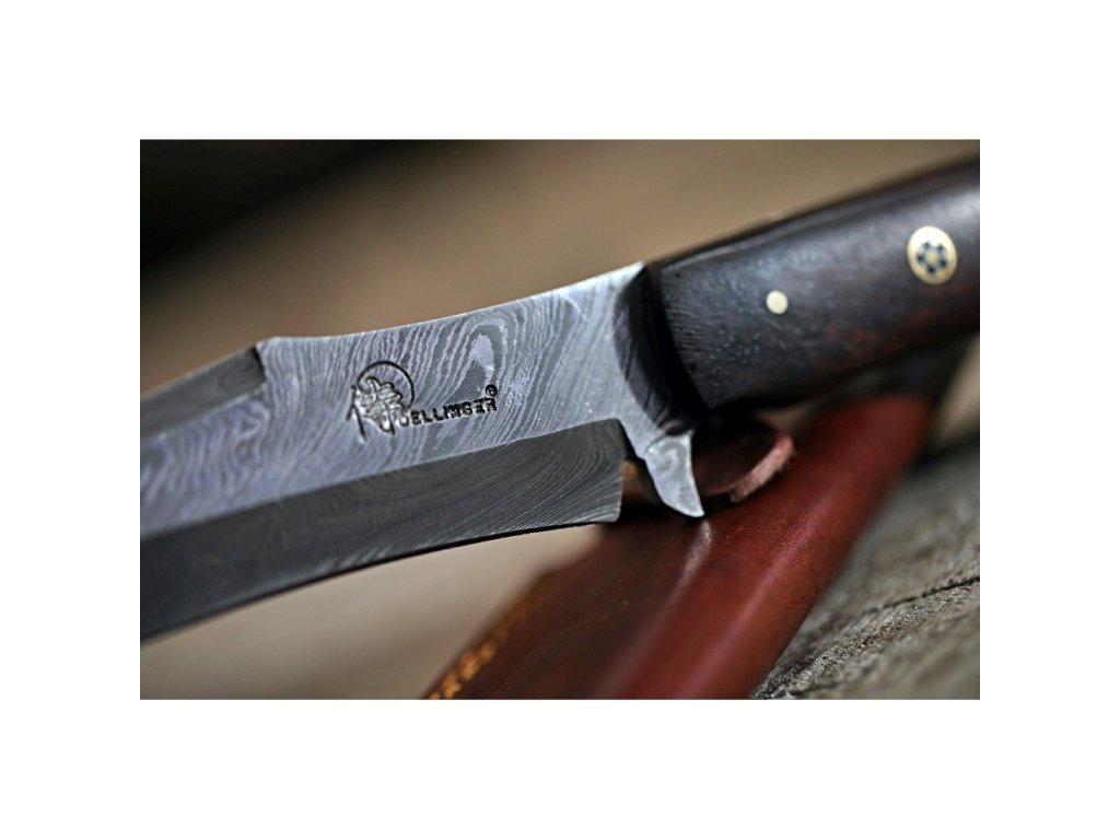 Lovecký nůž Dellinger Damask Iron Wood s koženým pouzdrem