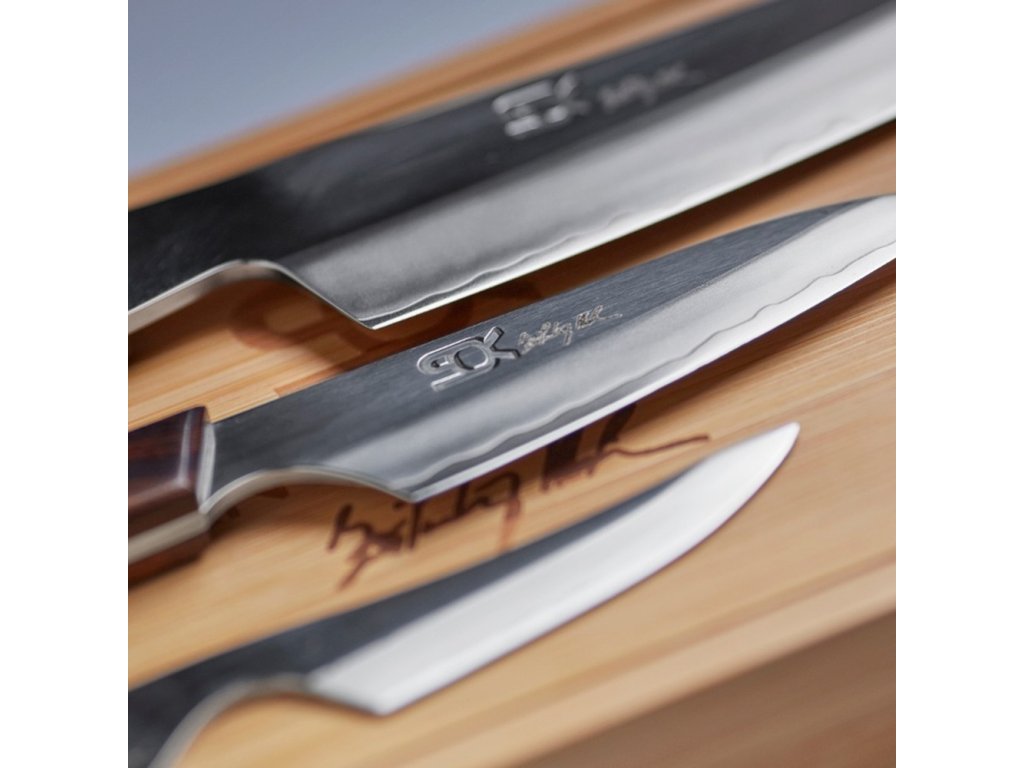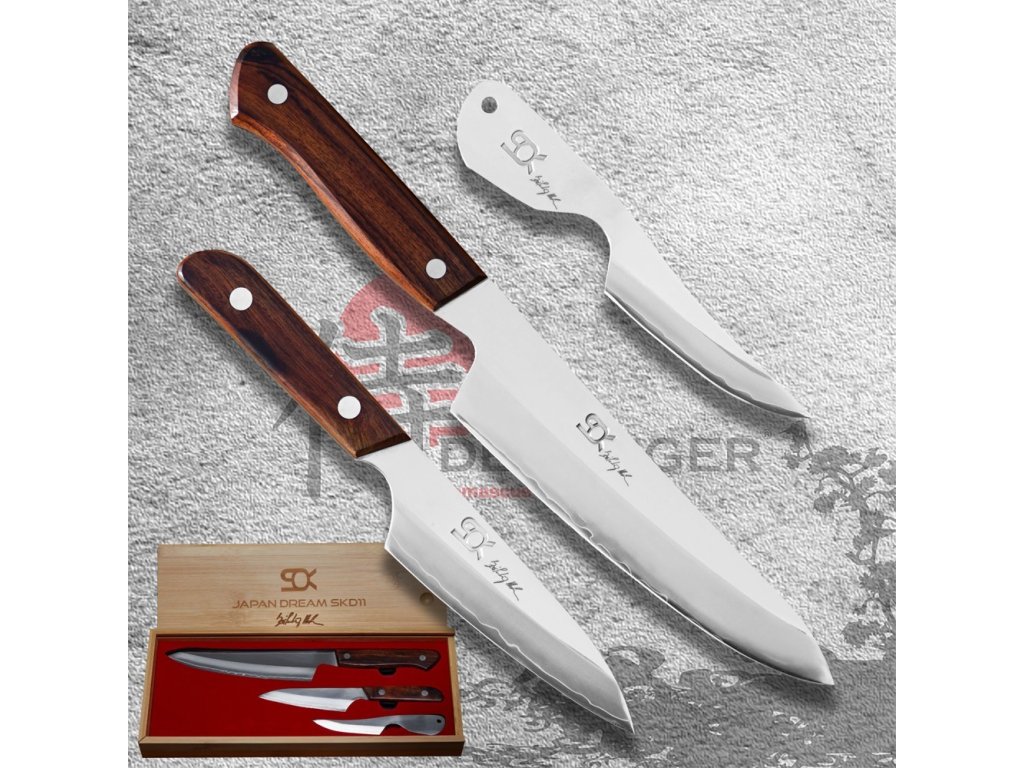 Exkluzivní sada kuchyňských nožů SOK Soul Of Knife z japonské oceli SKD11 v dřevěné dárkové krabici. Sada obsahuje nože Gyuto/Chef (165 mm), Petty (95 mm) a Paring (75 mm).