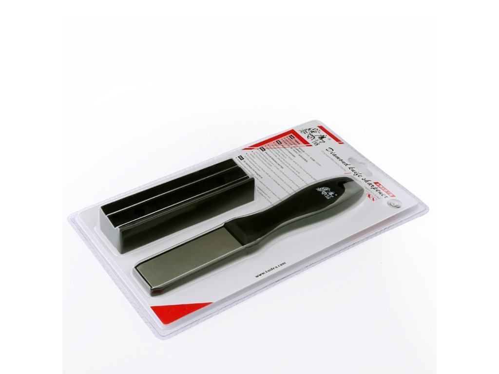 Diamantový pilník od společnosti Taidea s dvojí hrubostí, JIS #600 a JIS #1000. Pilník je vhodný na broušení kuchyňských nožů, loveckých nožů, keramických nožů a zahradnického náčiní. Protiskluzová základna, konstrukce úhlového vedení a integrovaný design pro uložení rukojeti. Hrubost JIS #600 a #1000.