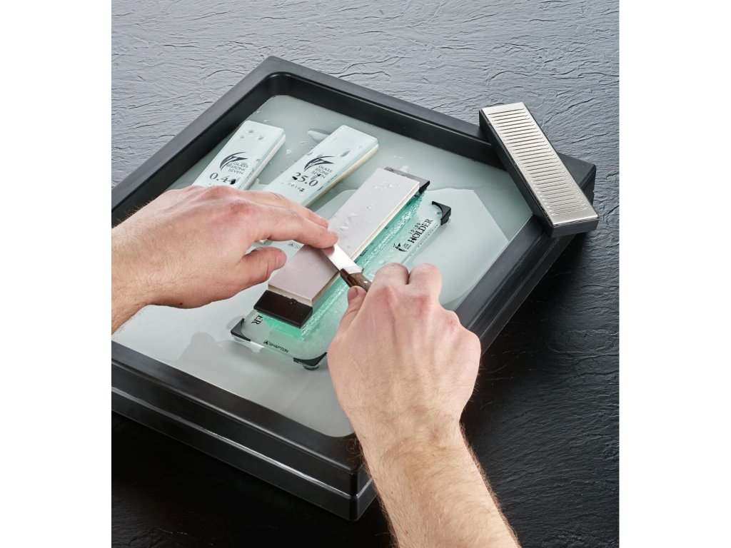 Robustní držák kamene ze série Shapton GlassStone pro pohodlnější broušení díky oddálení brusného kamene od pracovní desky. Rozměr 259x86x56 mm. Kameny nejsou součástí balení.