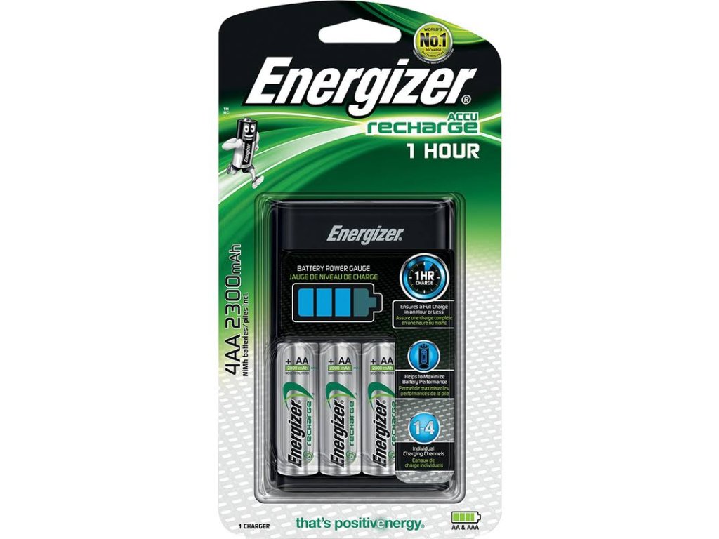 Nabíječka Energizer 1 h je vhodná na doma nebo na cesty. Díky autozásuvce lze dobíjet baterie také např. v automobilu. LED indikuje aktuální stav akumulátorů. Díky univerzálnímu rozsahu napětí lze použít na celém světě a je tak ideálním společníkem na cesty.