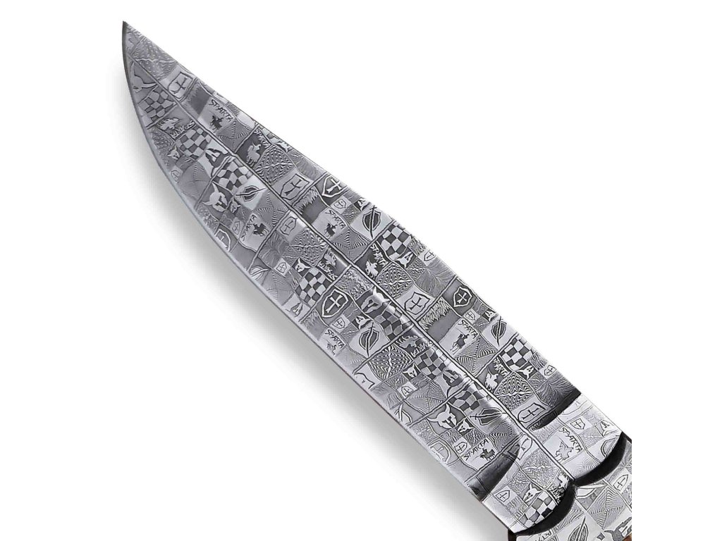 Upozornění Každý nůž je vyroben z přírodních materiálů. Každý kus oceli je originální a nenapodobitelný, proto Váš nůž nemusí vypadat přesně tak jak na fotografii. Nůž, který obdržíte, bude stejně kvalitní a detailně opracovaný, ale může se mírně lišit. |