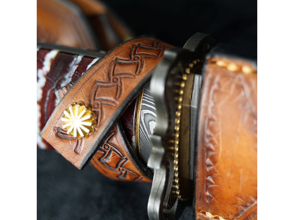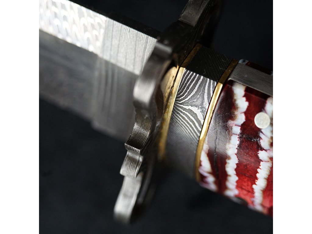 Jedná se o unikátní nůž Tanto, který byl vytvořen ve velmi omezeném množství. Nůž Tanto s ručně vyrobenou čepelí z damaškové oceli vyráběné v USA a to konkrétně od Randy Feather Damascus. Každý nůž je individuálně ručně broušen a dosahuje neuvěřitelné až extrémní ostrosti. Střenka (tsuka) je zdobená broušenou fosilií mamutího zubu, a ochranné prvky (tsuba a habaki) jsou z damaškové oceli. Kombinace mamutí fosilie a krásné kresby damašku od Randyho Feathra tvoří dokonalý pár, čímž konečný výsledek působí naprosto uchvacujícím dojmem. Více než 10 000 let stará fosilie mamutího zubu byla objevena na území Sibiře, což činí tento materiál vzácným a okouzlujícím. Při pouhém dotyku pocítíte poslední odkaz legendárního stvoření, které putovalo po Zemi na úsvitu lidstva.