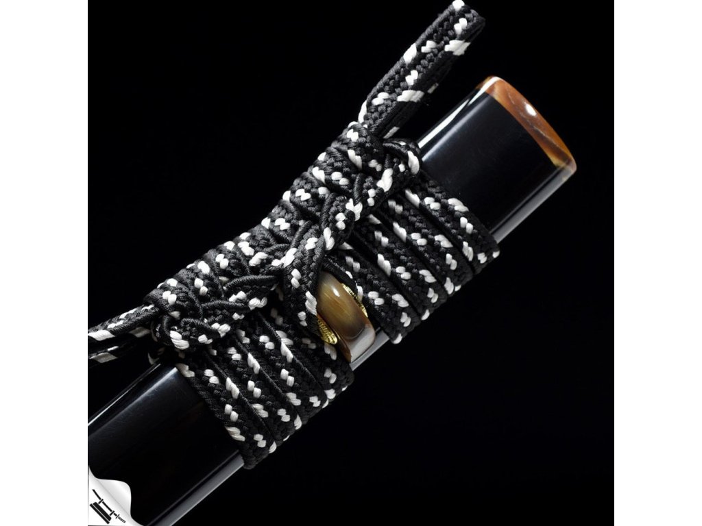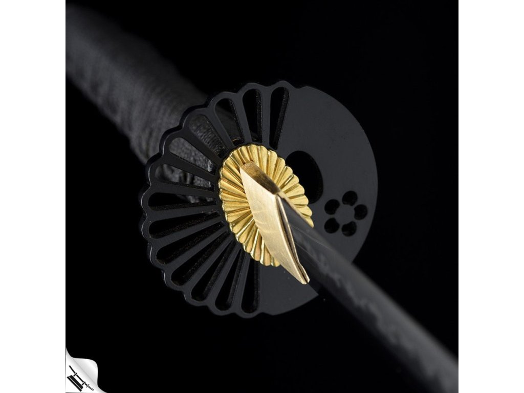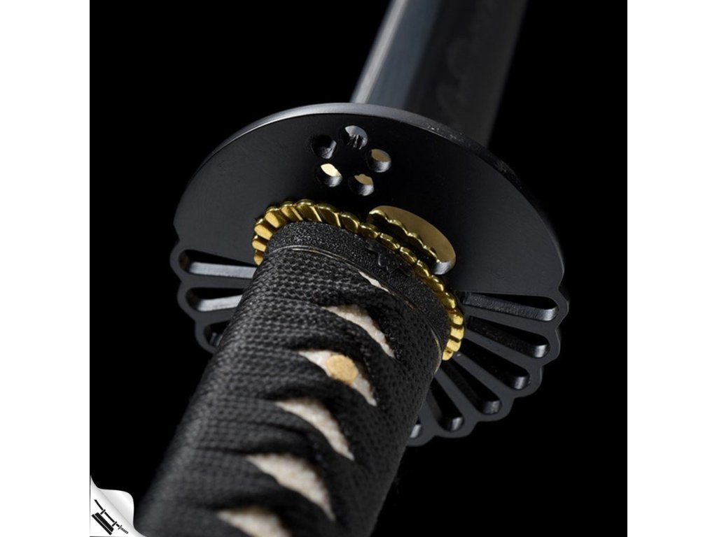 Výrazný reálný Choji hamon je tvořen dle dávných tradičních metod, které vychází z mnohaletých zkušeností kovářského mistra, který výrobou této nádherné zbraně strávil několik dnů. Vše na tomto meči je individuálně zhotoveno, včetně saye a habaki, jsou použity nejkvalitnější komponenty, včetně špičkového laku na sayu, japonského hedvábí a skutečné rejnočí kůže nejvyšší kvality. Jedná se o špičkovou repliku samurajského meče, která je vhodná k sekovým zkouškám a lze ji rozložit na jednotlivé části. Tato čepel byla vyzkoušena a testována tak, aby odstranila vše co jí stojí v cestě ! Sori (zakřivení čepele) je speciálně navrženo tak, aby bylo dosaženo co možná nejjemnějších a nejčistších řezů. To vše v kombinaci s výběrem tradičního kovaného Koshirae zaručuje, že získáte to nejlepší z hlediska vzhledu i funkčnosti. Uhlíková ocel T-10 má působivou tvrdost HRC 58 - perfektní kombinace této tvrdosti je podtrženo zakřivením čepele Sori, které umožňuje snadné přeseknutí tatami, slaměné rohože, nebo bambusu pro tameshigiri. Full tang konstrukce této katany výrazně zvyšuje sílu meče. Čepel je typu shinogi-zukuri, tento typ čepele se vyrábí od 10.století našeho letopočtu. Hrot meče ko kissaki se skutečným Diamond-Shaped Yokote, které je velmi dobře definováno tím, že hamon prochází po celé délce přes Boshi. Yokote je velmi důležité pro strukturální integritu špičky meče. Pomáhá absorbovat otřes, rozptýlí sílu a přispívá k stabilitě a síle meče při tzv. sekořezu. Tato katana (samurajský meč) je vhodná na použití v praxi, firma Dellinger se však zříká jakékoliv odpovědnosti za zranění a poškození vzniklá při použití. Schraňujte mimo dosah dětí ! Jakákoliv manipulace se samurajským mečem je na vaší vlastní odpovědnost. Nezapomeňte, že máte ve svých rukou smrtící zbraň !
