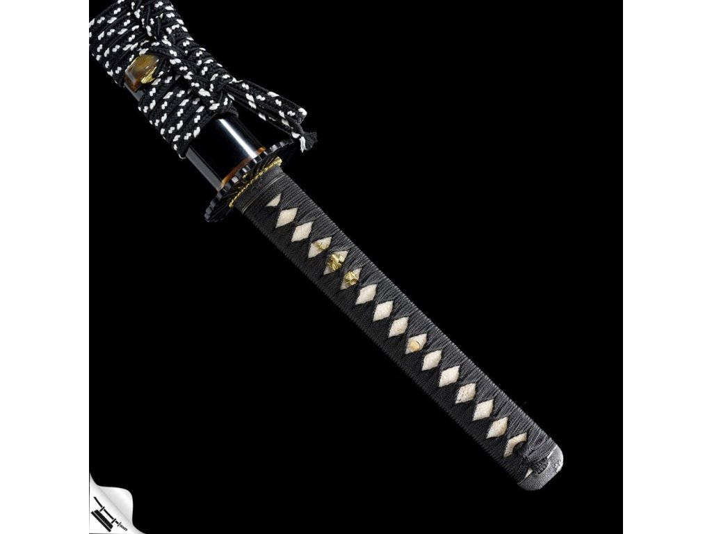 • Tsuka (rukojeť) - dřevěné jádro, potažena pravou rejnočí kůží (Samegawa), s hedvábnou černou omotávkou ITO. Čepel zajištěna 2 bambusovými kolíky "mekugi".