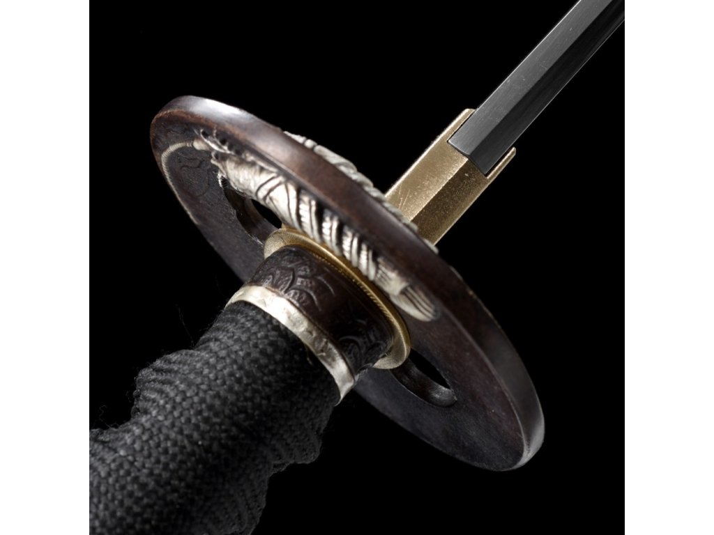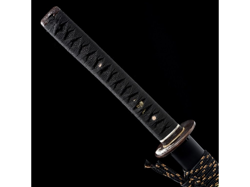 • Tsuka (rukojeť) - dřevěné jádro, potažena pravou rejnočí kůží (Samegawa), s černou hedvábnou omotávkou ITO. Čepel zajištěna 2 bambusovými kolíky "mekugi". Z každé strany tsuky je menuki (ornament).