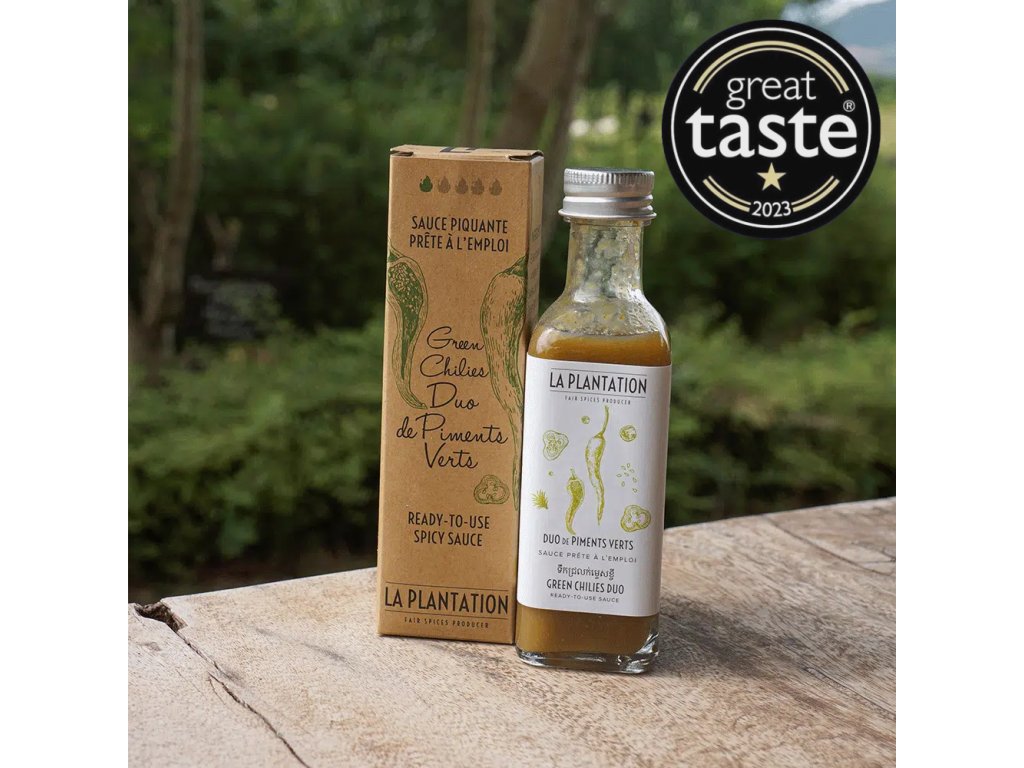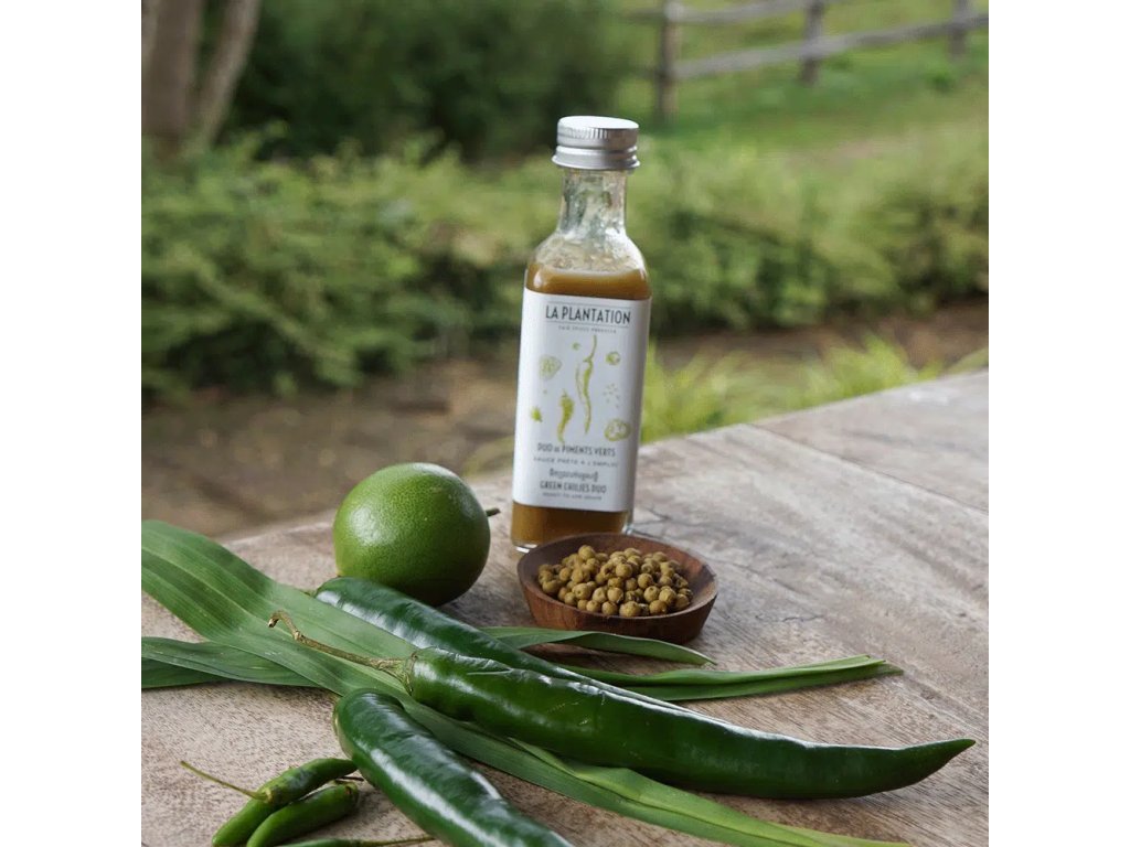 Omáčka ze zeleného chilli, zeleného Kampotského pepře a zelených rajčat - skvělá, svěží, jemně pálivá, jemně kyselá i nasládlá po třtinovém cukru a limetce. Díky nízké pálivosti si ji užije doslova každý, kdo snese základní pálivost omáček. Ingredience jsou organického původu, nejsou použity žádné konzervanty, zahušťovadla a ani barviva, tak jak jste u nás zvyklí.