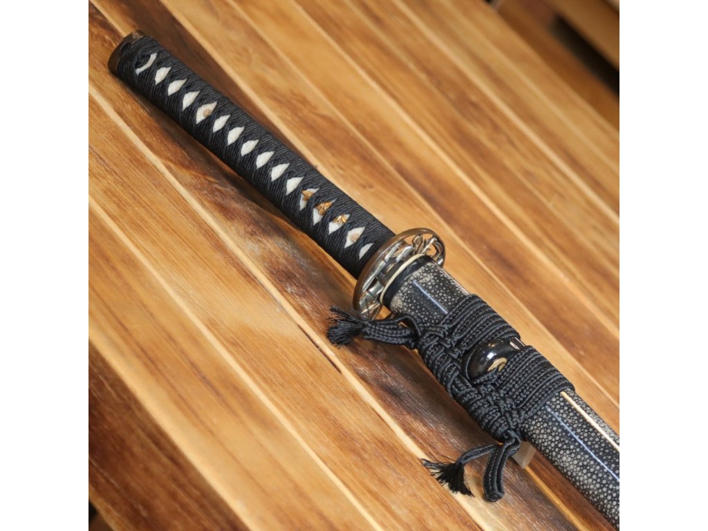 ✅ tsuka: (rukojeť) dřevěné jádro s vloženou pravou kůží z rejnoka (Samegawa) oplet ITO černé barvy. Čepel katany je zajištěna dvěma bambusovými kolíky (mekugi). Čepel od rukojeti můžete odmontovat vytažením těchto kolíků. Na obou stranách Tsuky je menuki (ornament).