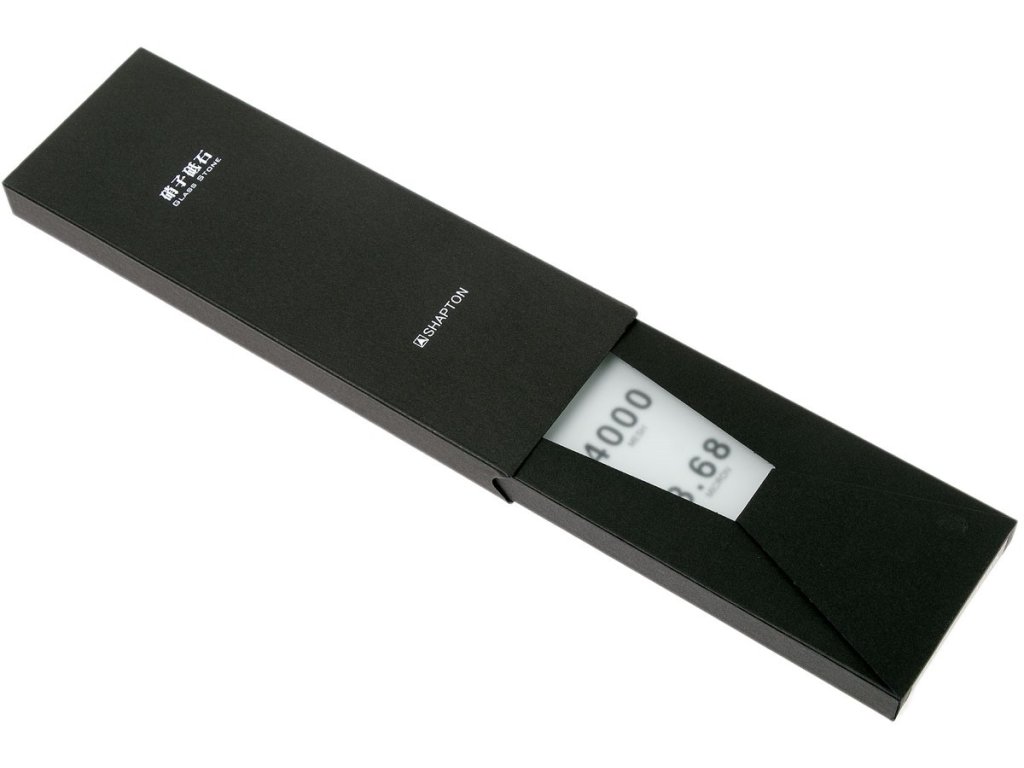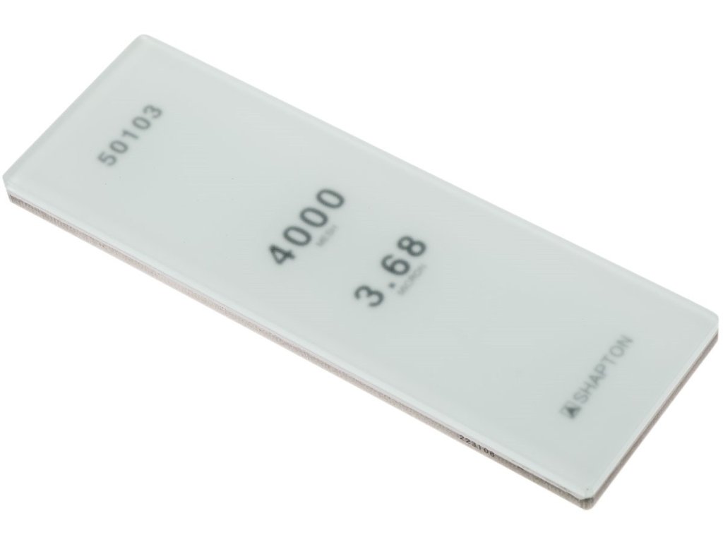 Brusný japonský kámen Shapton Glass s hrubostí JIS #4000 3.68 micron vhodný pro nerez ocel. Série brusných kamenů GlassStone využívá revoluční design, zajišťuje skvělou použitelnost spočívající v tenkém balení. Kameny jsou vytvořené z kombinace skleněných vrstev. Rozměr kamene s podložkou: 210x70x10 mm.