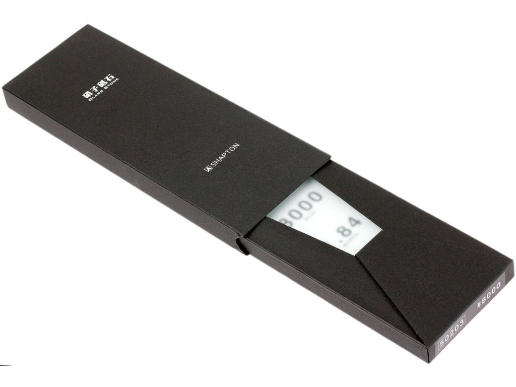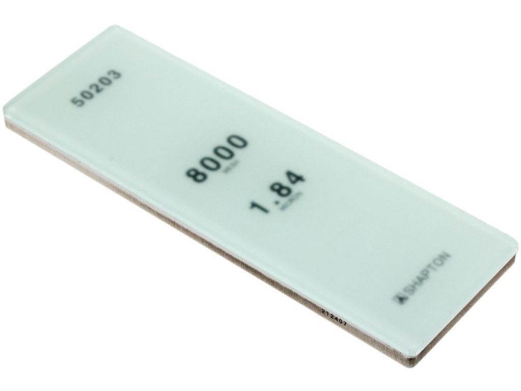 Brusný kámen Shapton Glass s hrubostí JIS 8000 1.84 micron vhodný pro nerez ocel. Série brusných kamenů GlassStone využívá revoluční design, zajišťuje skvělou použitelnost spočívající v tenkém balení vytvořeném z kombinace skleněných vrstev.