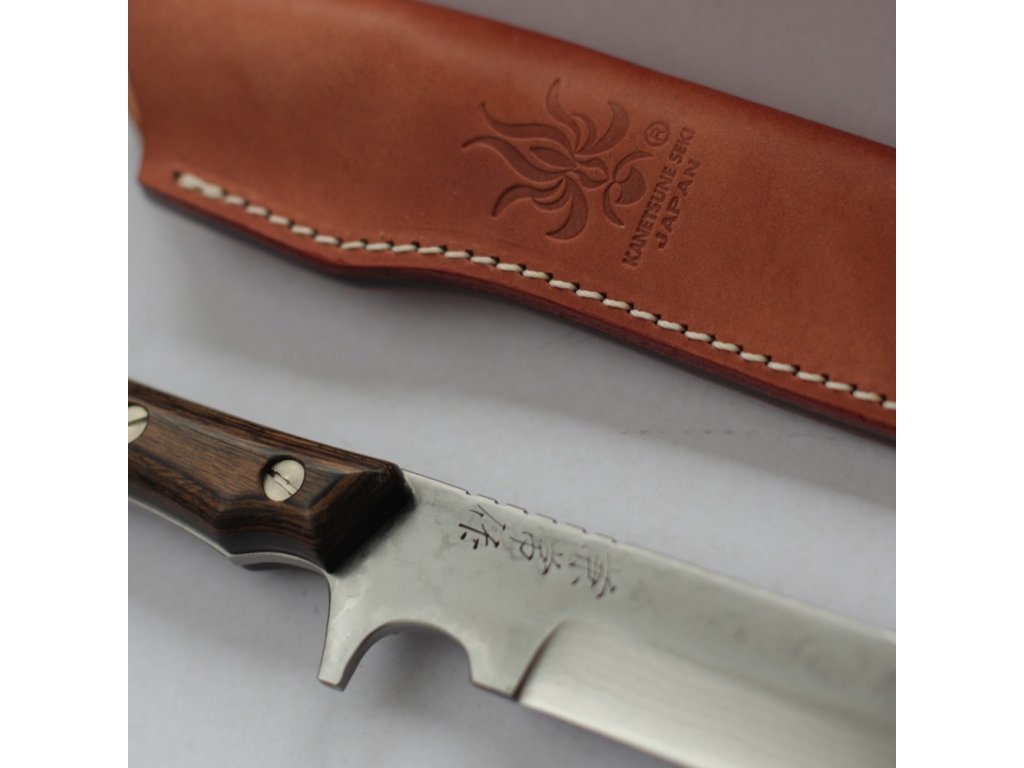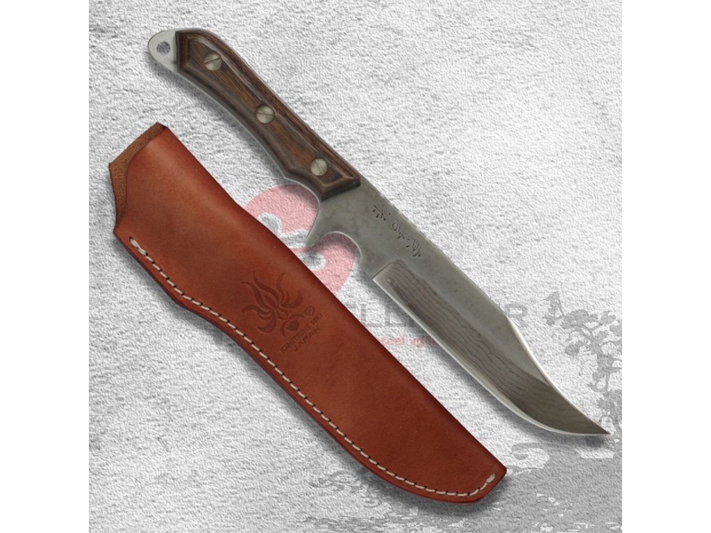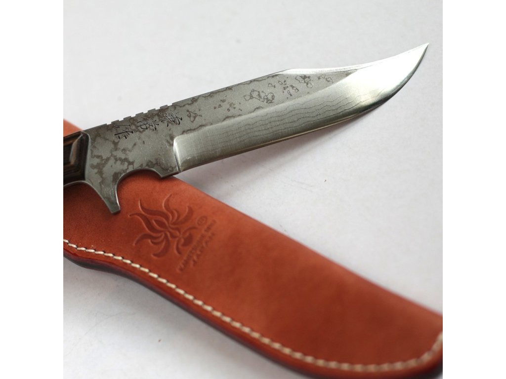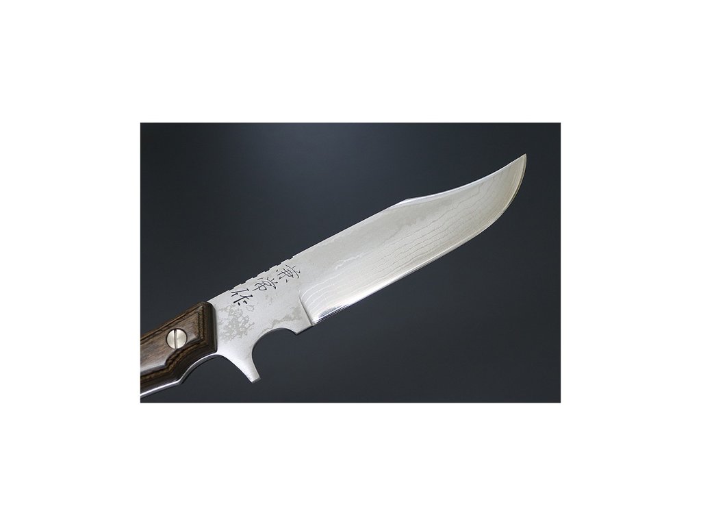 Lovecký nůž Seseragi Clip s pevnou čepelí z japonské damaškové oceli Blue Steel #2 nabízí extrémní ostrost a dlouhou životnost ostří. Rukojeť z odolného Plywoodu perfektně sedí v ruce a výřez pro ukazováček zajišťuje maximální kontrolu při práci. Ideální pro lov, vyvrhování a dělení zvěřiny. Dodává se s kvalitním koženým pouzdrem. Vyrobeno v Japonsku firmou Kanetsune - Kitasho Co., Ltd..