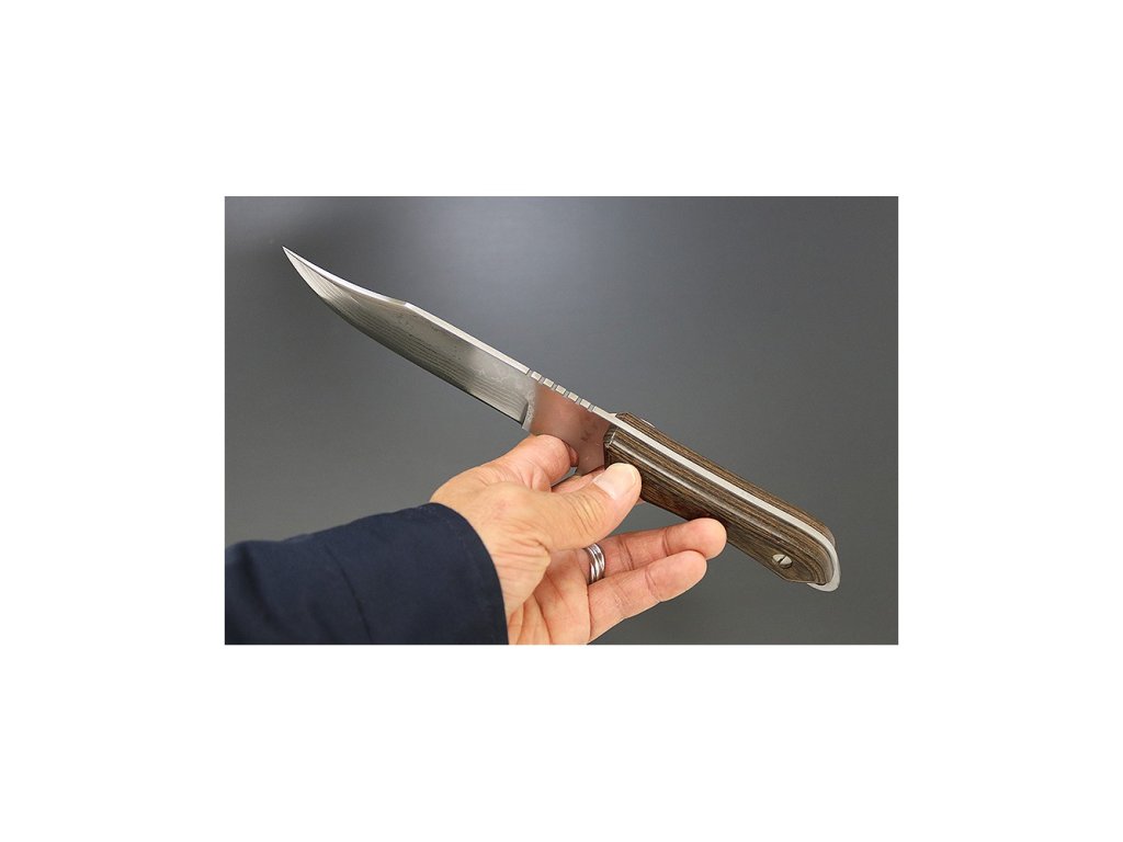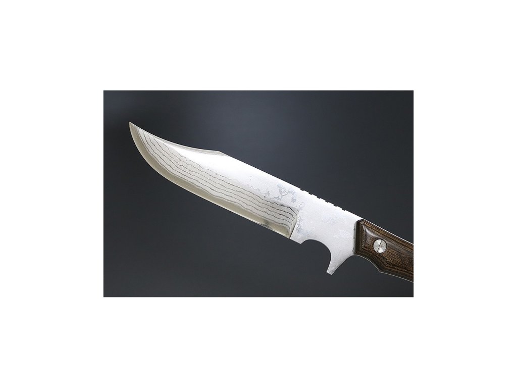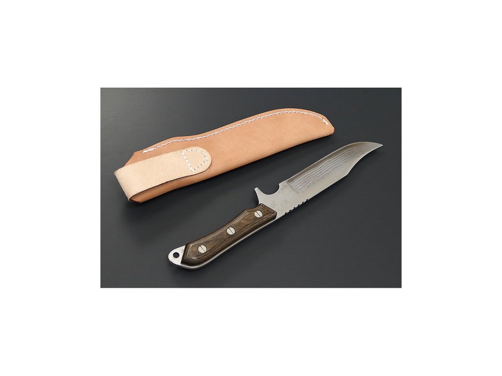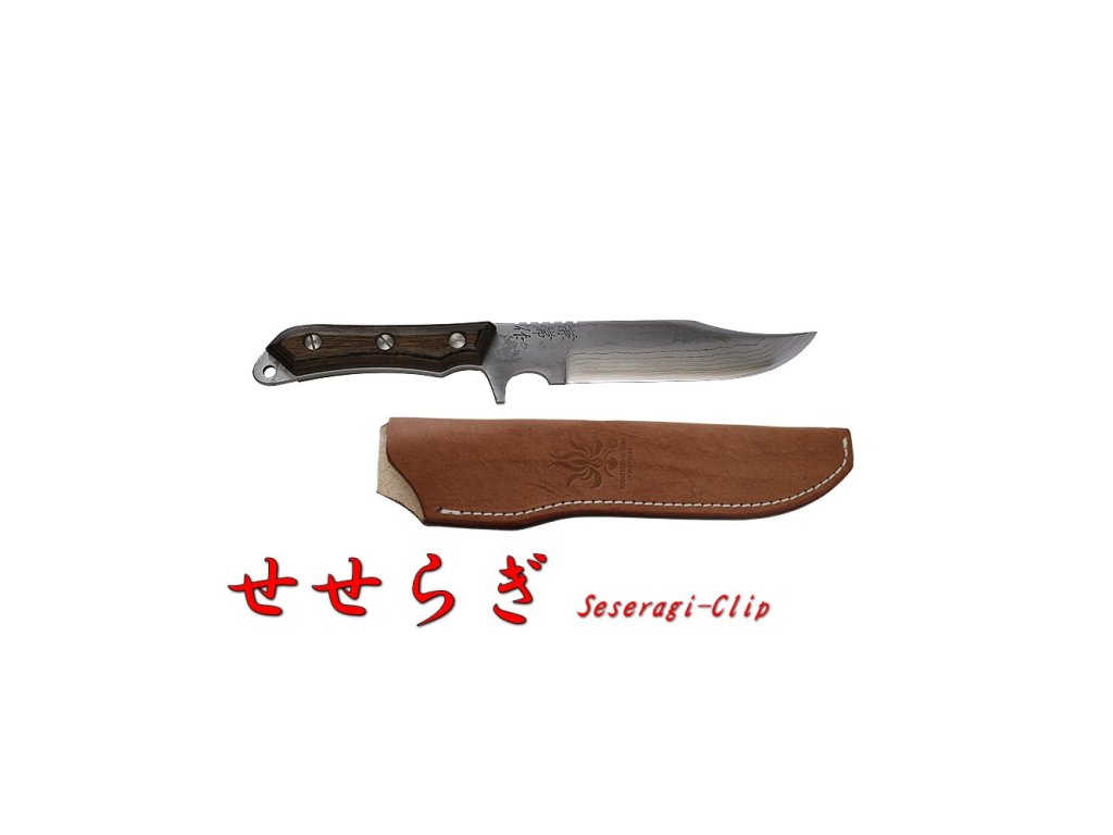 Pevná čepel nože Seseragi Clip je vyrobena japonské damaškové oceli Blue Steel #2. Díky tomu je nůž mimořádně ostrý. Navíc vrstvená damašková ocel působí impozantně. Velmi odolná rukojeť je vyrobena z Plywoodu. Dřevěná rukojeť skvěle padne i do větších rukou. Má i výřez pro ukazováček, který poskytuje lepší úchop pro drobnější práce. Tento lovecký nůž je ideální pro lov a s ním vše spojené - vyvrhování, stahování a rušení zvěře a dělení zvěřiny. Na konci rukojeti je otvor pro paracord. Nůž je dodávaný v koženém pouzdru.