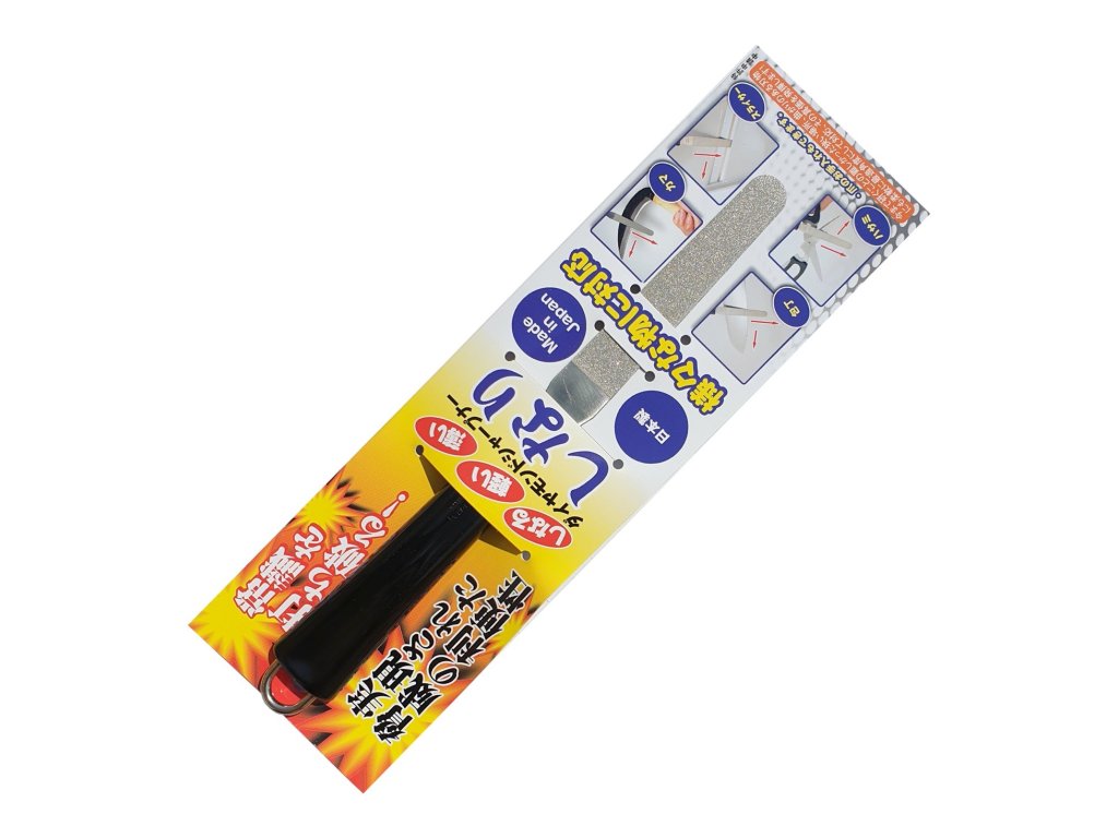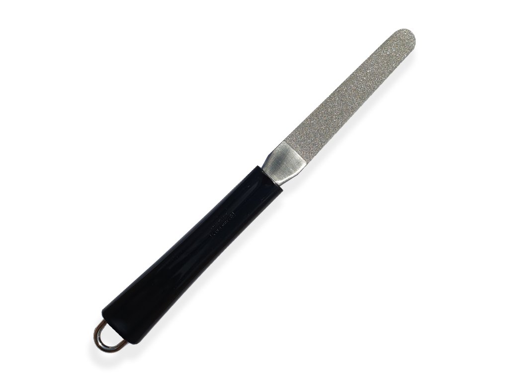 Oboustranný diamantový pilník od společnosti SUNCRAFT Japan s černou rukojetí. Flexibilní pilník na keramické nože, kuchyňské a lovecké nože, nůžky a kosy.