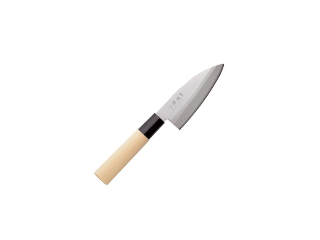 Ostrý japonský nůž Ajikiri/malá Deba z kvalitní nerezové oceli 420 J2 HRC 53(+/-) byl vyroben ve městě Seki, které je známé výrobou nožů po celém světě. Robustní nůž broušený v japonském stylu pouze z jedné strany. Tento nůž se používá na ryby a ostatní maso. Jeho konstrukce čepele umožňuje snadné vykosťování, tenké plátkování masa a sekání menších kostí. Jedná se o perfektní nůž také pro přípravu sushi.