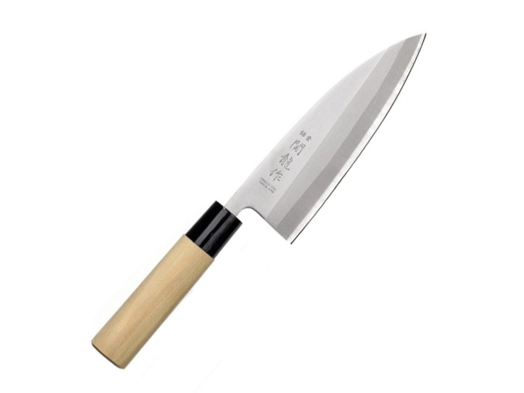 Japonský kuchařský nůž Deba ze série Sekiryu Stainles Steel s čepelí z nerezové oceli 420 J2 a rukojeť ve tvaru písmene D ze dřeva topolu. Tradiční japonský nůž, který byl původně navržen pro zpracování ryb, ale skvěle si poradí i s masem a drůbeží. Délka čepele 165 mm.