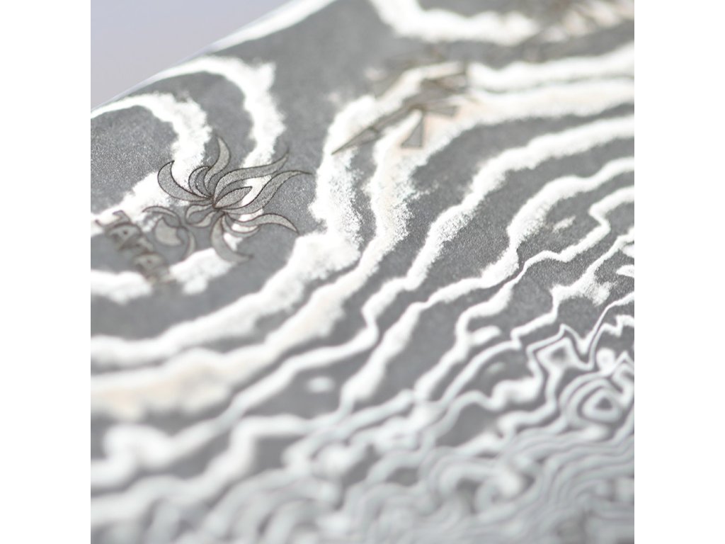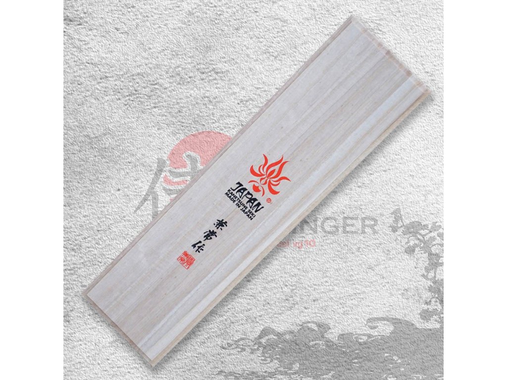 V českém překladu to znamená „vlny na vodní hladině“. A když se zadíváte na atraktivní damaškovou čepel, tak skutečně vypadá jako vlny na hladině oceánu. Je složena ze 101 vrstev damaškové oceli s jádrem z vysokořezné práškové oceli o tvrdosti HRC 60,5-61,5. Japonská tradiční oktagonová rukojeť „八角 柄“ je vyrobena z černého dřeva Plywood a je vkusně doplněna červenými proužky z micarty, na konci rukojeti je vyrytý znak Kanetsune. Způsob uchycení čepele rukojeti Etsuke je zde tzv. naražení na trn, kdy se čepel zahřeje a narazí se do rukojeti. Tento nůž je dodáván v luxusní dřevěné krabici s japonskou sayou (dřevěný kryt na čepel), který je vyroben ze dřeva magnolie s tradiční povrchovou úpravou "Kuro-Ishime".