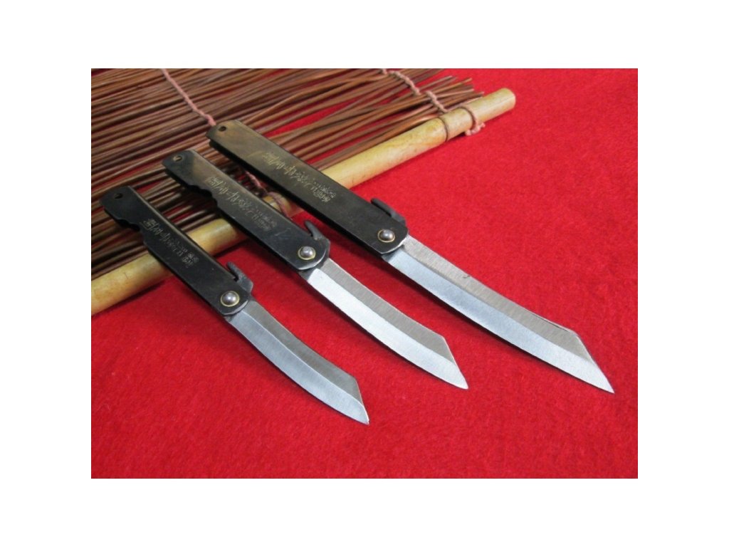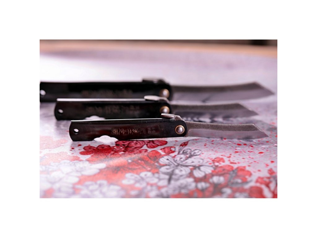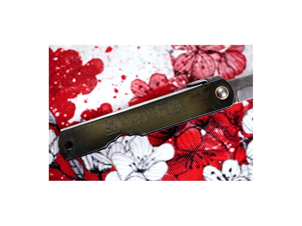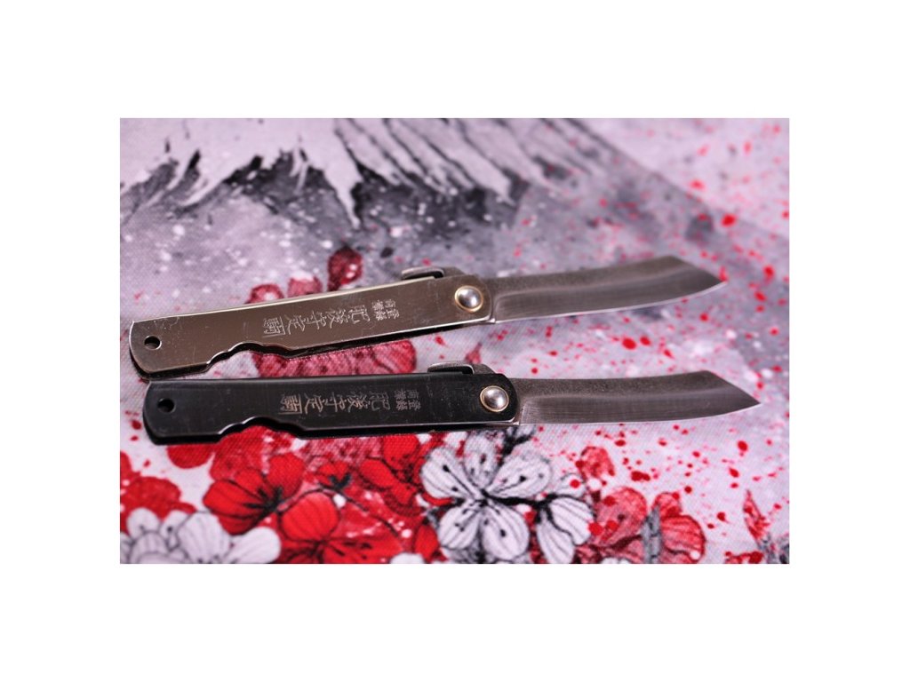 Čepel je vyráběna z vysoce uhlíkové oceli, která je velmi ostrá a odolná. Ta je vložena do rukojeti, která je vyrobená z mosazi nebo černě barveného kusa železa následně zdobeného portréty, květinami, zvířaty nebo krajinou. Kompaktní, lehký a historií opředený zavírací kapesní nůž Higonokami není jen čepel - je to kulturní artefakt, který hladce spojuje minulost se současností. Noste u sebe denně kus japonského dědictví, kde každý řez vypráví příběh řemeslné zručnosti a odolnosti.