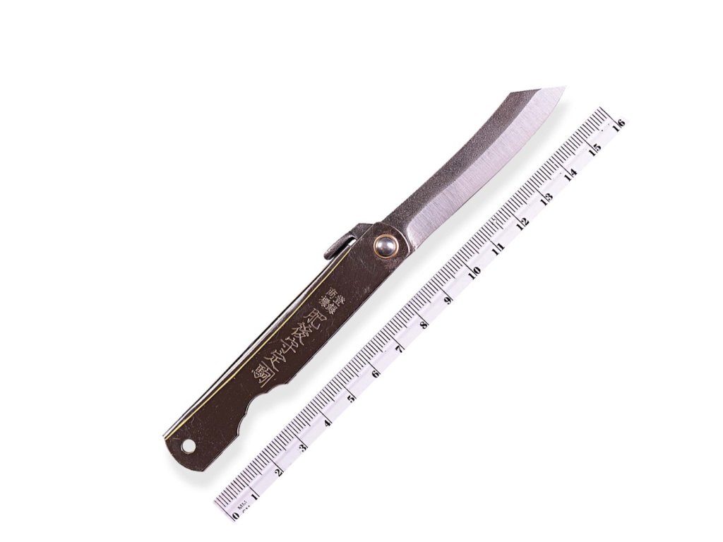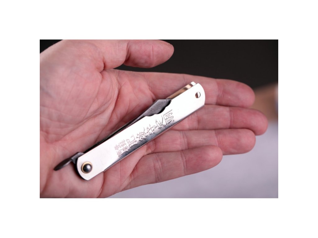 Čepel je vyráběna z vysoce uhlíkové oceli, která je velmi ostrá a odolná. Ta je vložena do rukojeti, která je vyrobená z mosazi nebo černě barveného kusa železa následně zdobeného portréty, květinami, zvířaty nebo krajinou. Kompaktní, lehký a historií opředený zavírací kapesní nůž Higonokami není jen čepel - je to kulturní artefakt, který hladce spojuje minulost se současností. Noste u sebe denně kus japonského dědictví, kde každý řez vypráví příběh řemeslné zručnosti a odolnosti.