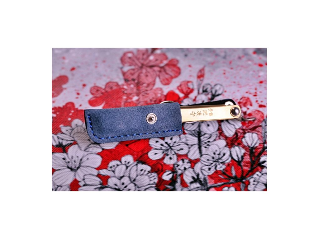 Higonokami mini 003B & japonský zavírací nůž & vrstvená ocel SK-5 & mosazná rukojeť & modré pouzdro & Sekiryu Japan