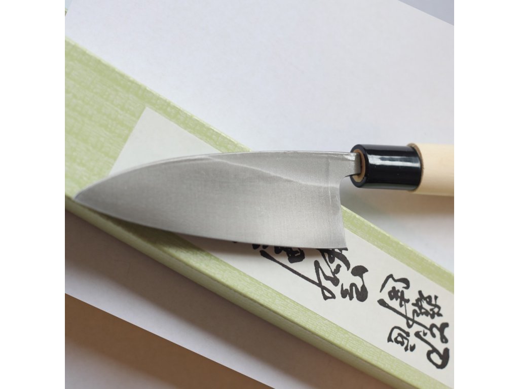 Vysoce kvalitní kuchyňské nože v japonském stylu pro profesionální použití. Tyto nože mají silnou čepel a pokud tento typ nože neznáte, budete překvapeni jeho vahou. Jde o tradiční japonský nůž, jehož ergonomie je uzpůsobena pro porcování a filetování ryb. Nože Deba jsou broušeny z jedné strany a druhá strana má vždy dutý výbrus – tzv. „Ura“ . Tato konstrukce umožňuje právě i silným nožem krájet slabé plátky. Broušení je u jednostranně broušených nožů složitější, proto jsou určeny pro zkušenější uživatele. Konstrukce nože tvoří jádro, které je vyrobeno z kované oceli Hitachi White #3 (Shirogami #3) což je velmi čistá uhlíková ocel s tvrdostí 60-61 HRC. Tyto nože lze opakovaně brousit do velmi jemného ostří.