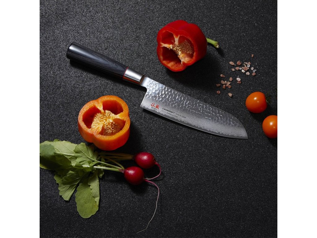 Nože Suncraft Senzo Classic Tsuchime Damascus jsou o něco těžší než standardní japonské nože. Přidaná hmotnost je výsledkem kování čepeli za studena. Obvyklá síla polotovaru před lisováním je 4 mm. Tímto procesem, který se nazývá Tsuchime (kladívkový povrch) získává nůž nejen skvělý vzhled, ale také zabraňuje přilepení krájeného materiálu k čepeli.