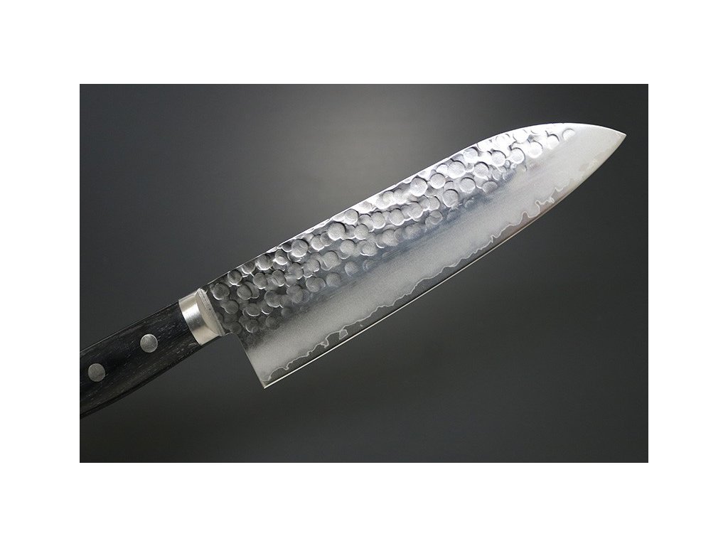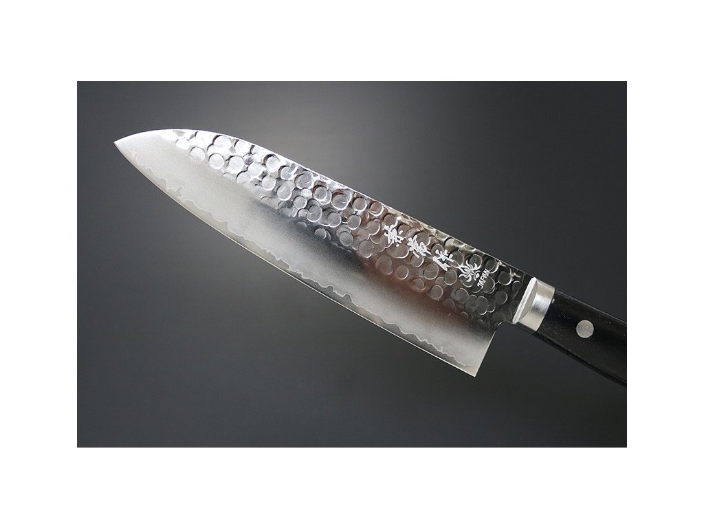 Santoku je dokonalým společníkem při práci s masem, rybami, zeleninou a ovocem. Nepřekonatelné vlastnosti nože oceníte například při krájení cibule. Ostrost čepele zajistí minimální únik tekutiny a vaše pokrmy budou plné šťávy a vitamínů. Široká čepel a klasická západní rukojeť s trojím nýtováním vám poskytne nejlepší kontrolu při řezání a krájení. Japonská preciznost a nové technologie činí tento nůž z oceli VG-1 Stainless steel core/SUS410 Stainless steel (Tsuchime "Mirror" polish) jedinečným a ideálním jak pro domácí, tak profesionální použití.
