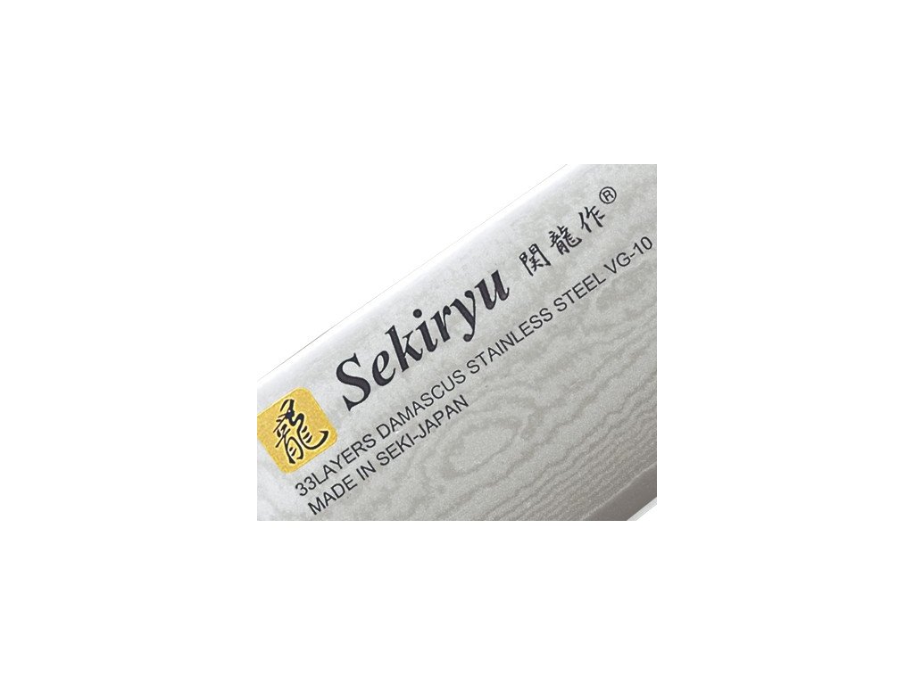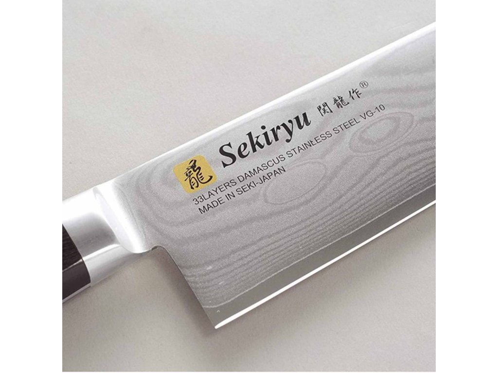 Nůž Santoku/Chef od japonské společnosti Sekiryu má ultra ostré řezné jádro z japonské oceli VG10, které je velmi dobře chráněno proti korozi. Japonská ocel VG10 má dlouhotrvající ostrost při tvrdosti HRC R62 +/- 1. Jádro z japonské oceli VG10 je vloženo mezi 66 vrstev 2 nerezových damaškových ocelí, které zajišťují mimořádnou odolnost a houževnatost. Dokonale vyvážená a široká čepel japonského tvaru s třpytivým damaškovým vzorem minimalizuje tření při řezu a zabraňuje přilepení krájeného materiálu k čepeli. Damaškový vzor je jedinečný a neopakovatelný.