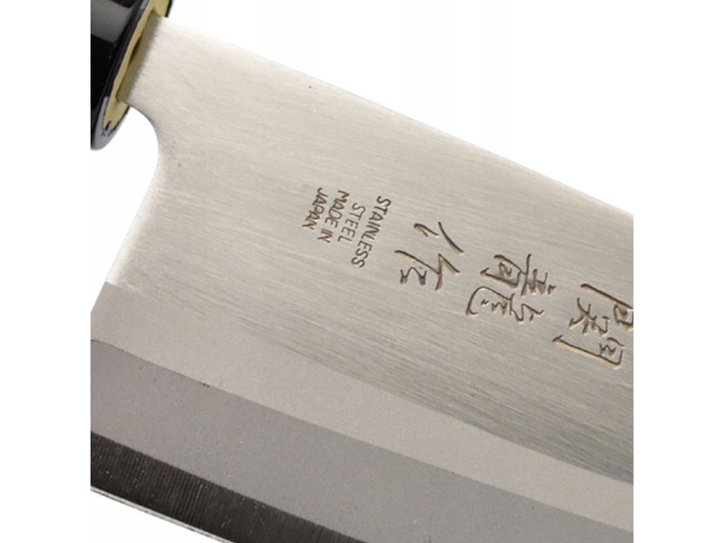 Ostrý japonský nůž Sashimi/Yanagiba z kvalitní nerezové oceli 420 J2 HRC 53(+/-) byl vyroben ve městě Seki, které je známé výrobou nožů po celém světě. Robustní jednostranný nůž broušený v japonském stylu pouze z jedné strany. Profesionální dlouhý krájecí nůž určený k řezání tenkých plátků ryb pro sushi a sashimi. Jeho překrásná robustní čepel je schopna řezat přísady v dlouhých nepřerušovaných řezech a tím zachovat jejich celistvost a svěžest. Yanagiba je jedním z nejdůležitějších tradičních japonských nožů a je součástí repertoáru mnoha kuchařů. Dokonce i nejjednodušší úkoly s tímto krásným a funkčním nožem jsou povýšeny na mimořádný zážitek.