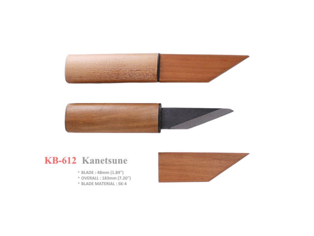 Jednostranně broušený japonský nůž Kiridashi je ostrý nůž nejen na vyřezávání do dřeva. Snadno zastane práci, jako u nás dobře známý "kobercák". Je vyrobený z uhlíkové oceli SK-5 s jednoduchou fazetovou brusnou úpravou.