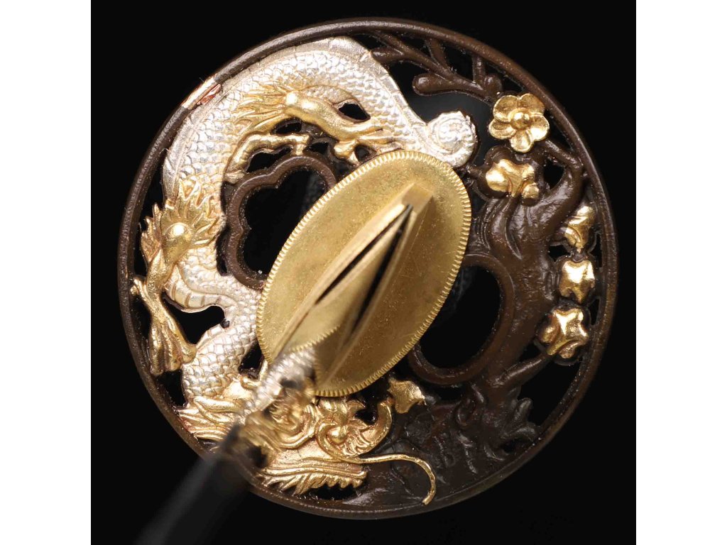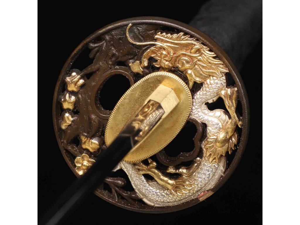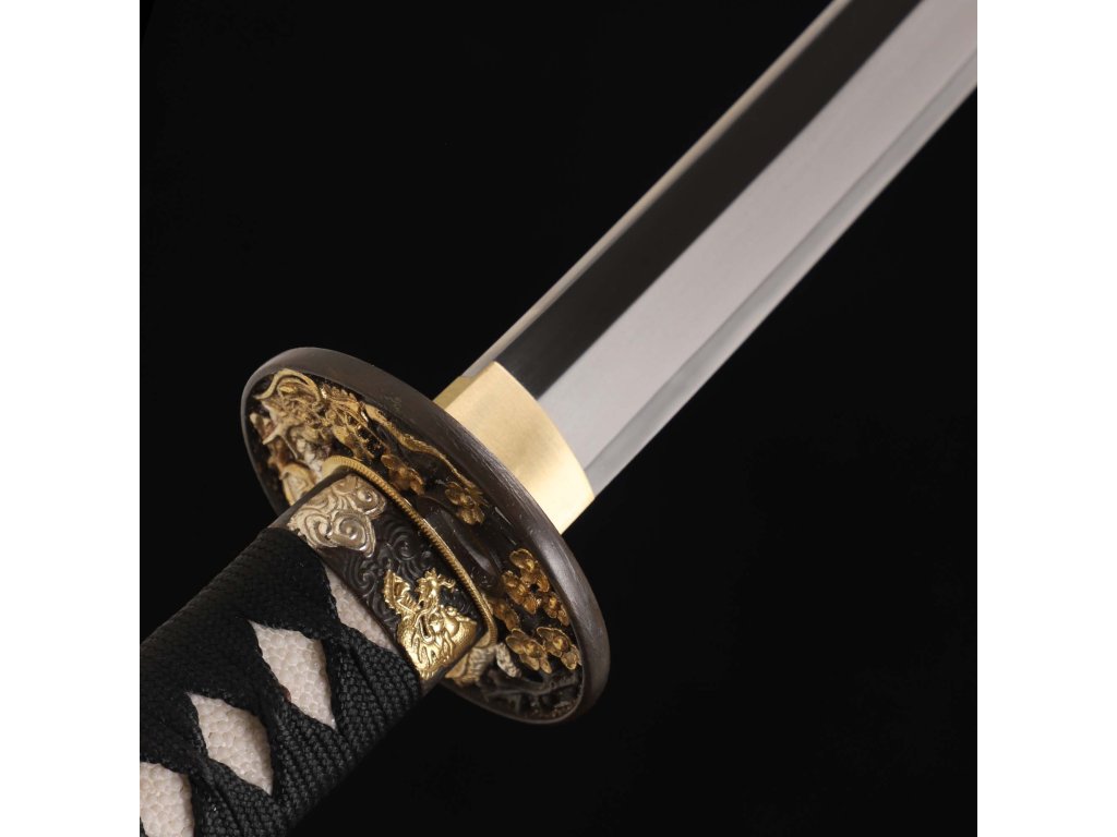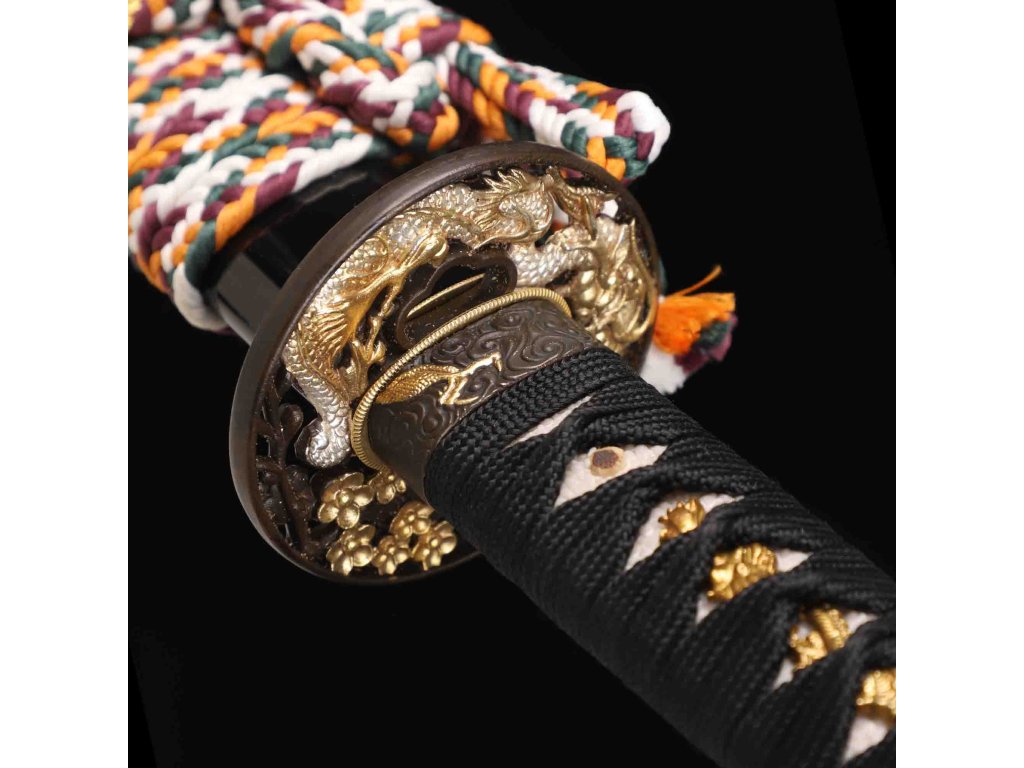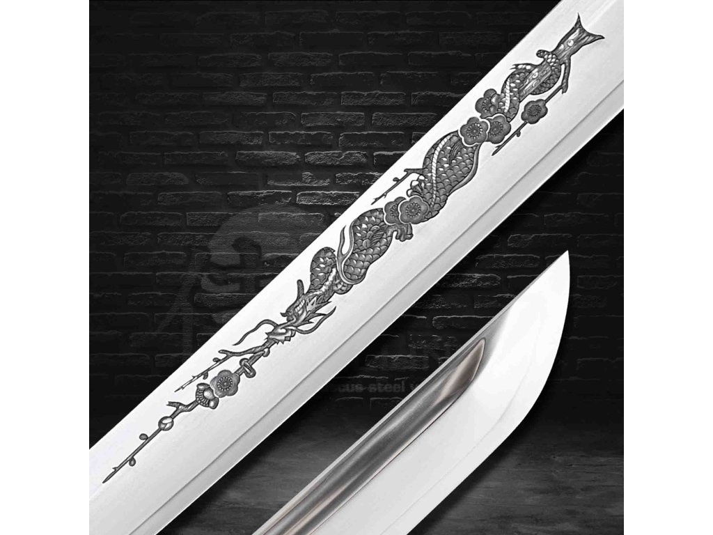 katana dragon flower horimono T-10 Carbon Steel, Real Suguha Hamon, Bo-Hi, Yokote