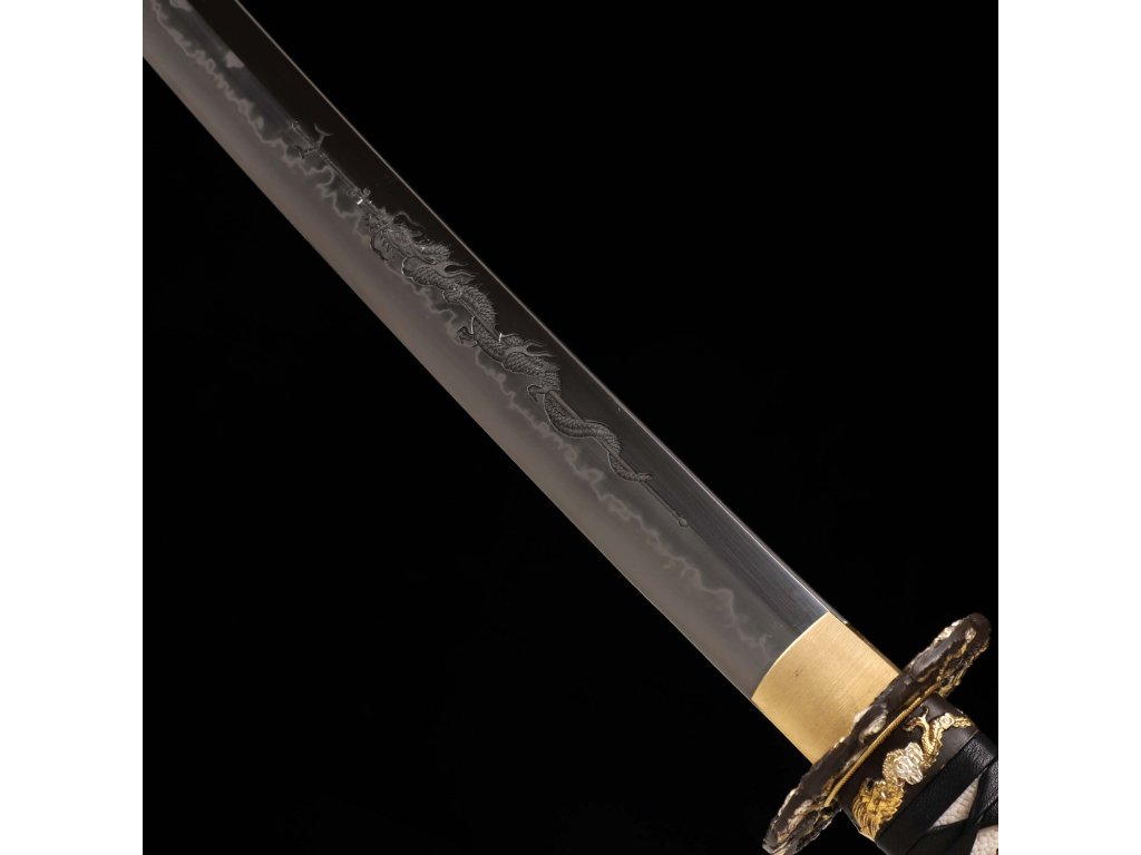 Katana Dragon Spear Horimono Japanese Sword T-10 Mono-Steel, Real Choji Clover Tree Flower Hamon, nagasa 2,50 Shaku, hrot chu-kissaki, Yokote