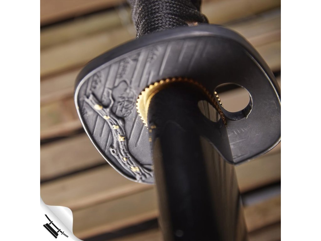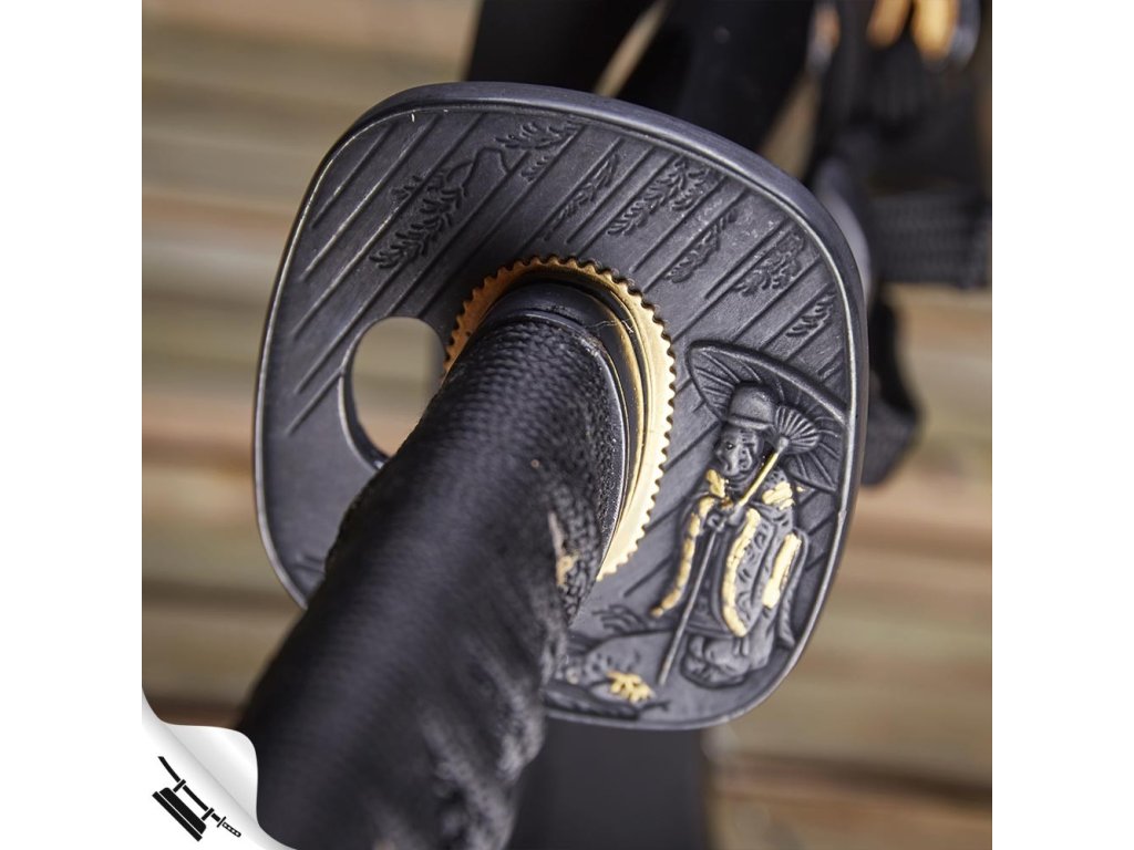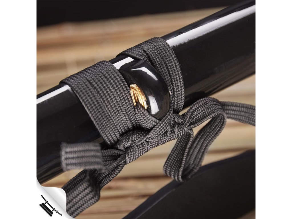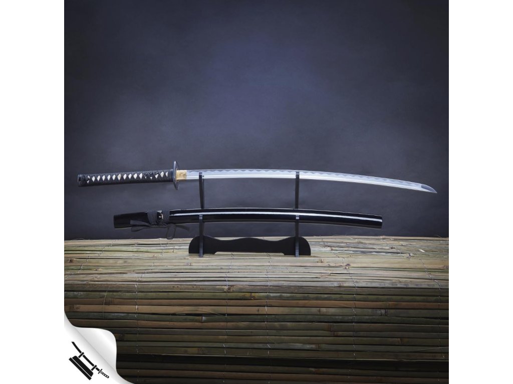 Replika meče katana Junrei-sha s čepelí z uhlíkové oceli AISI 1045 o délce 2,30 shaku, tvrdost ostří 48 HRC. Leštěná imitace hamonu a žlábek Bo-Hi. Hrot chu-kissaki, Diamond Shaped Yokote. Rukojeť s rejnočí kůží.