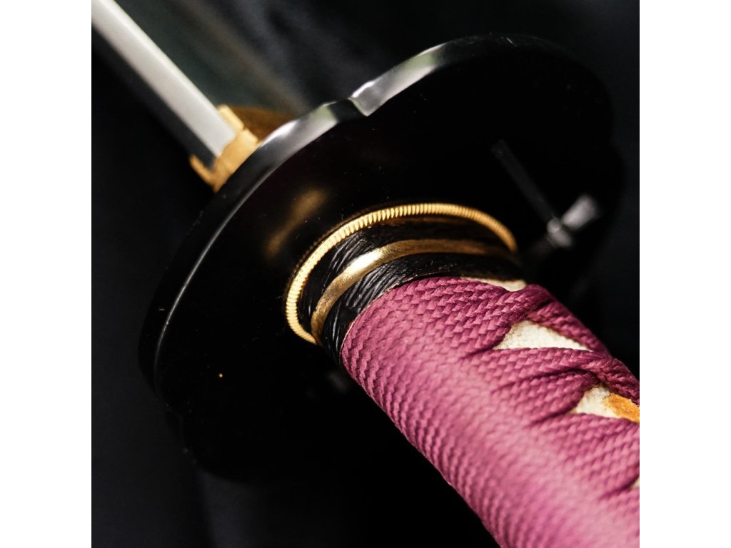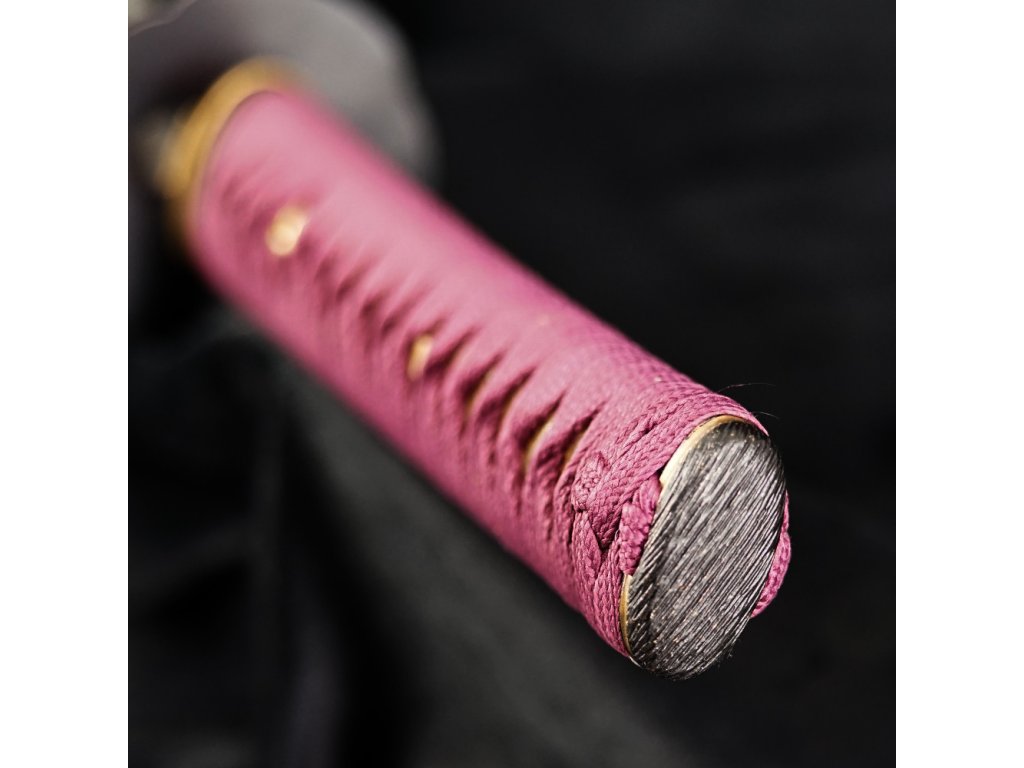 Tsuka: (rukojeť) dřevěné jádro obalené pravou kůží z rejnoka (Samegawa) s vínovým opletem - Ito. Čepel katany je zajištěna dvěma mekugi (bambusové kolíky). Čepel od rukojeti můžete odmontovat vytažením těchto kolíků. Na každé straně Tsuky (rukojeti) je menuki (ornament pod opletem). Černé měděné zakončení rukojeti (Kashira) s rytinami