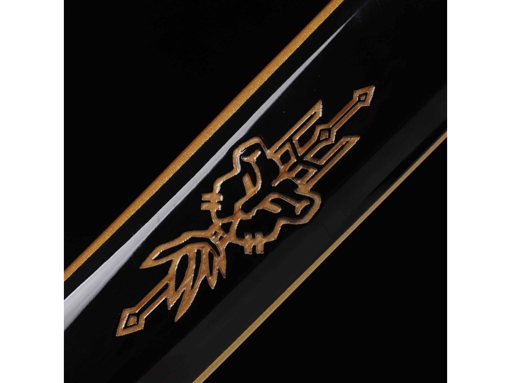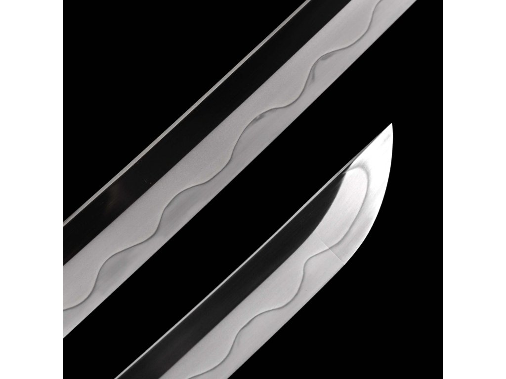Špičková replika legendární filmové katany The Bride od Hattori Hanzō z filmu Kill Bill. Čepel z uhlíkové oceli T-10 v monokompozitní konfiguraci Maru, se skutečným hamonem (choji + suguha), diferencovaně kalená, ručně leštěná kamenem hazuya do zrcadlového lesku, tvrdost ostří 58 HRC. Hrot čepele je tvarovaný shinogi-zukuri a chu kissaki se skutečným Diamond-Shaped Yokote. Full tang konstrukce zaručuje maximální pevnost a ostrost. Bez žlábku bo-hi, broušená téměř do žiletkového ostří (razor sharp). Čepel je zdobena horimono – stylizovaným znakem Hattori Hanzō, symbolem lva. Rukojeť v tradičním stylu s pravou rejnočí kůží a koženým opletem Ito. Perfektní volba pro sběratele, fanoušky samurajských filmů nebo sekové zkoušky tameshigiri.
