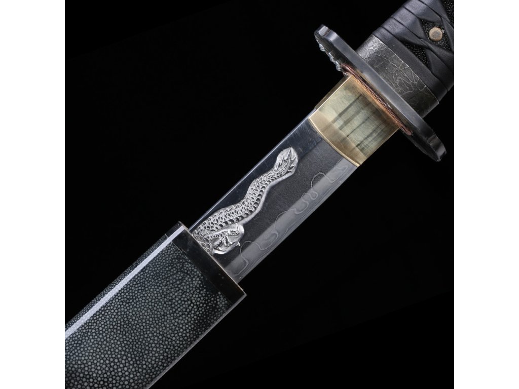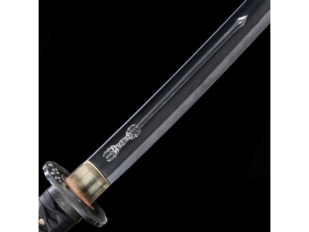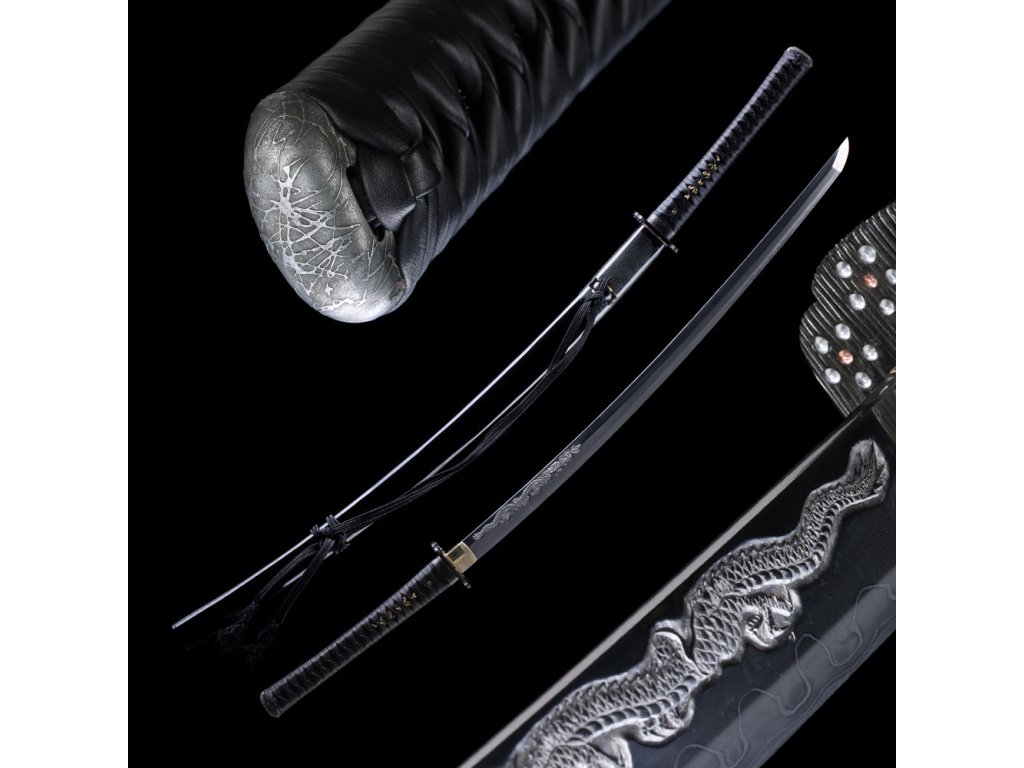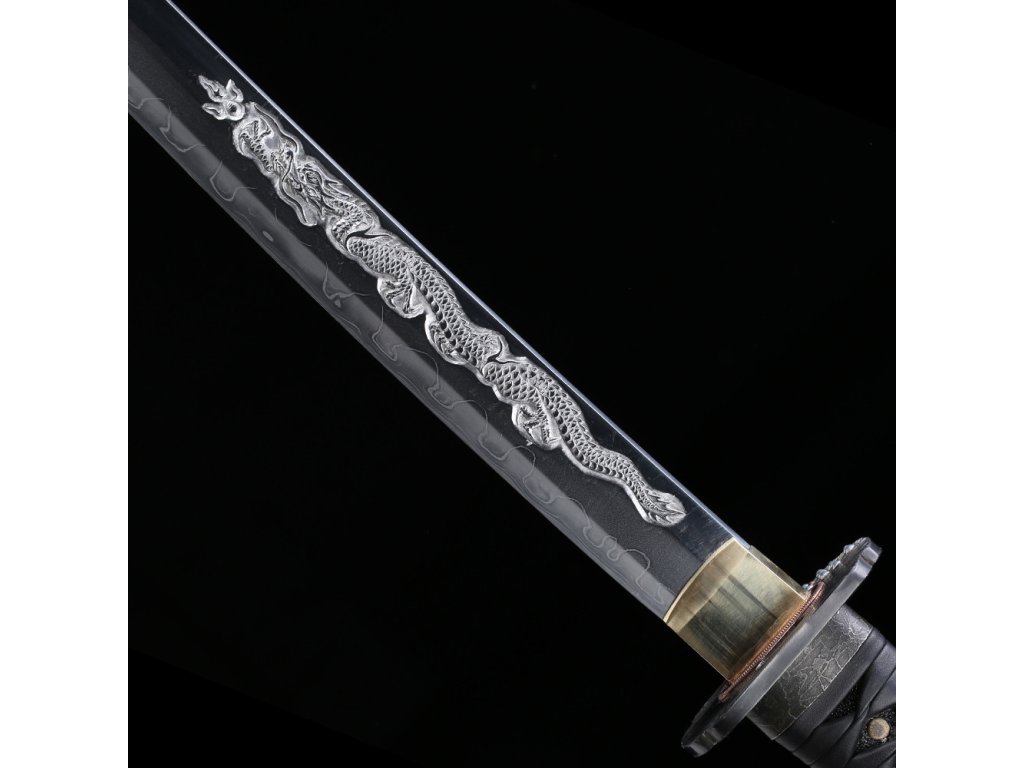 katana Kokushibyo z japonské oceli Tamahagane, oboustranné horimono