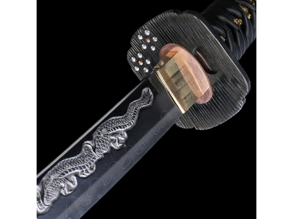 Katana Kokushibyo & Nagasa 2,39 Shaku & Japanese Sword & Tamahagane Steel & reálný hamon Suguha & Diamond Shaped Yokote & oboustranné horimono & tvrdost ostří (hasaki) 59 HRC