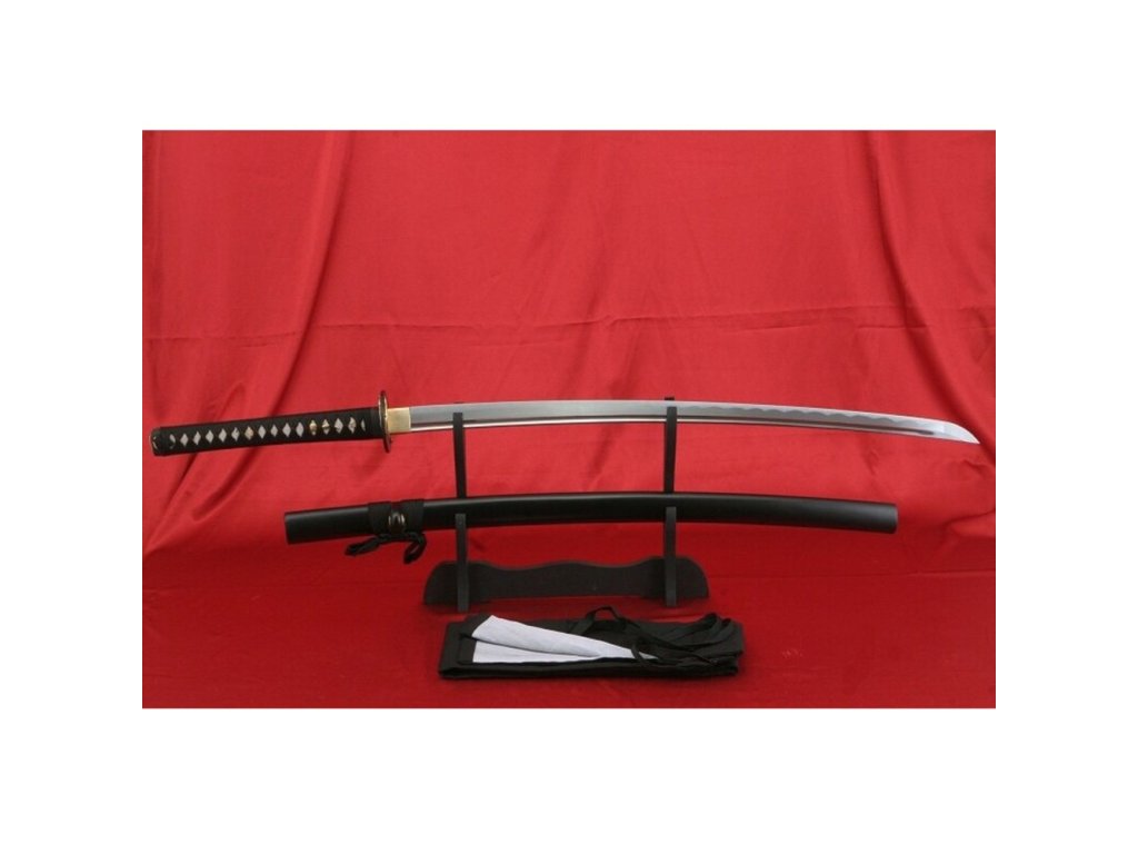Dekorativní replika meče katana Odawara s čepelí z uhlíkové oceli AISI 1045, délka čepele nagasa 2,30 Shaku. Čepel je broušená, s leštěnou imitací hamonu a žlábkem bo-hi, zakončená hrotem chu-kissaki, Diamond Shaped Yokote. Díky nižší tvrdosti ostří (hasaki) 48 HRC je vhodná zejména jako dekorace nebo pro nácvik technik, nikoliv pro sekání tvrdých materiálů. Černá matná saya a tsuka potažená pravou rejnočí kůží dodávají meči autentický vzhled. Dodává se v plátěném vaku a papírové krabici, je možné vytvořit set s Wakizashi Odawara.