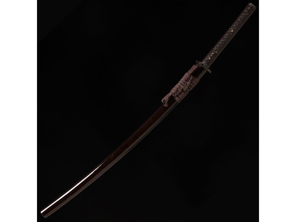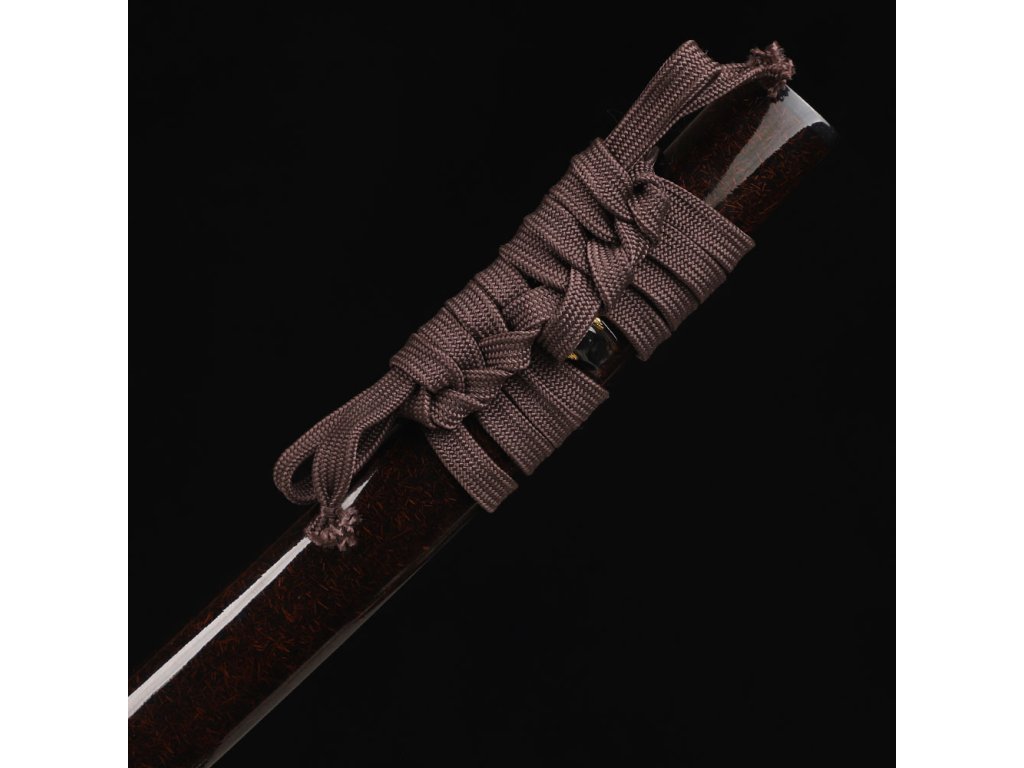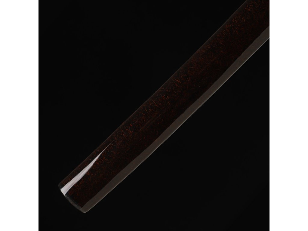 Pochva této katany je vyrobena z pevného dřeva a lakovaná do hnědé barvy s lesklým povrchem - je to ukáza tradiční estetiky wabi-sabi. Pochva je doplněna ozdobným hnědým opletem sageo omotaným kolem kurigaty.