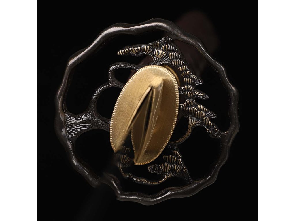 Samurajský meč Senotakai Matsu z T10 oceli – Mistrovská práce s motivem stromu borovice. Kovaná katana kombinuje tradiční řemeslo, estetické zdobení a špičkové materiály. Čepel z T10 uhlíkové oceli s diferencovaným kalením vytváří krásnou linii hamon ve stylu suguha, která připomíná klidnou hladinu vody. Meč je vybaven elegantními a funkčními doplňky v minimalistickém stylu s důrazem na motiv stromu borovice, což symbolizuje štěstí a chrání před zlými silami. Čepel bez žlábku bo-hi byla ve finální fázi ručně leštěna kamenem hazuya - tím je dosaženo téměř žiletkového ostří (razor sharp) a zrcadlového lesku. Tato čepel byla vyzkoušena a testována tak, aby odstranila vše co jí stojí v cestě ! Sori (zakřivení čepele) je speciálně navrženo tak, aby bylo dosaženo co možná nejjemnějších a nejčistších řezů. Uhlíková monokompozitní ocel T-10 má působivou tvrdost ve škále HRC 58 - perfektní kombinace této tvrdosti je podtrženo zakřivením čepele Sori (2,5 cm), které umožňuje snadné přeseknutí tatami, slaměné rohože, nebo bambusu pro tameshigiri. Full tang konstrukce této čepele výrazně zvyšuje sílu meče.
