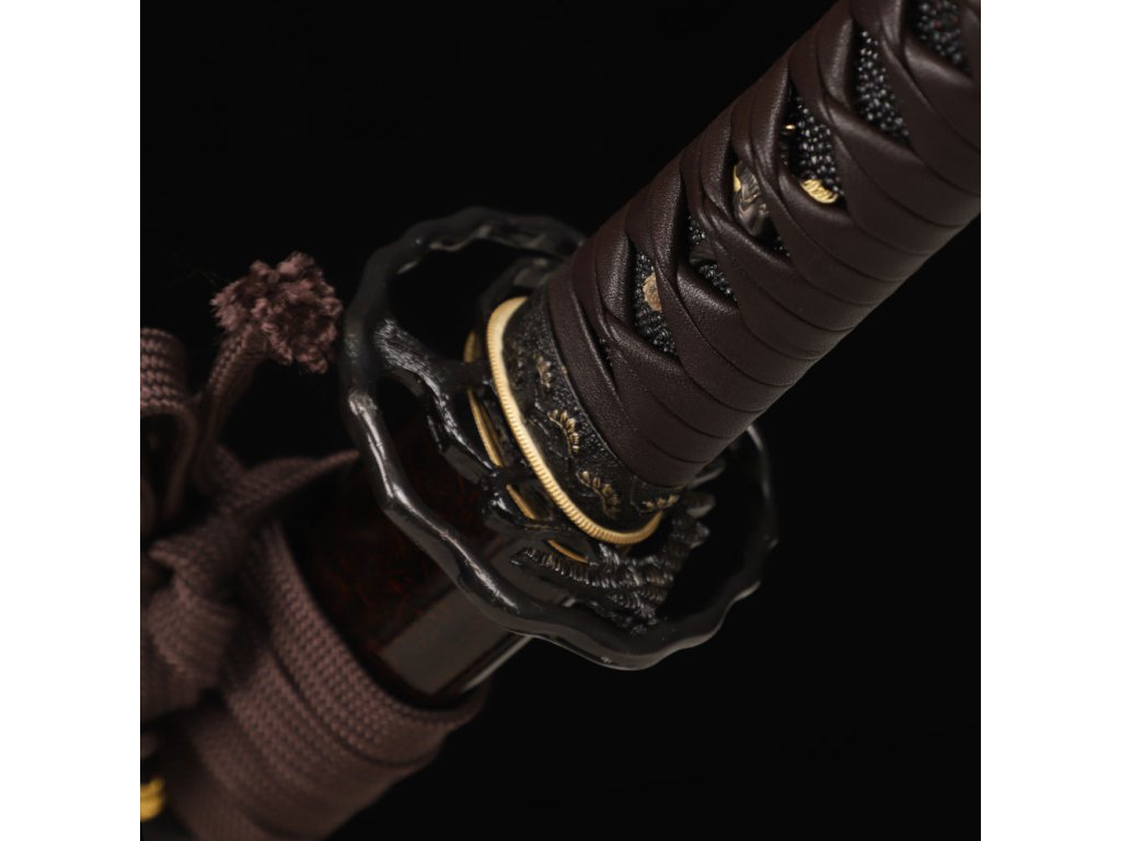 - Zalité jehličí je znakem umělecké propracovanosti a řemeslného mistrovství. Kombinace přírodních prvků a funkčních materiálů odráží vkus a jedinečnost samurajů nebo vlastníků těchto mečů.