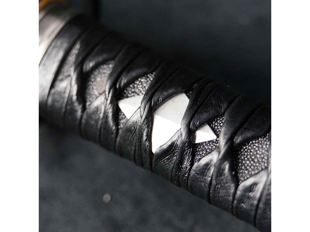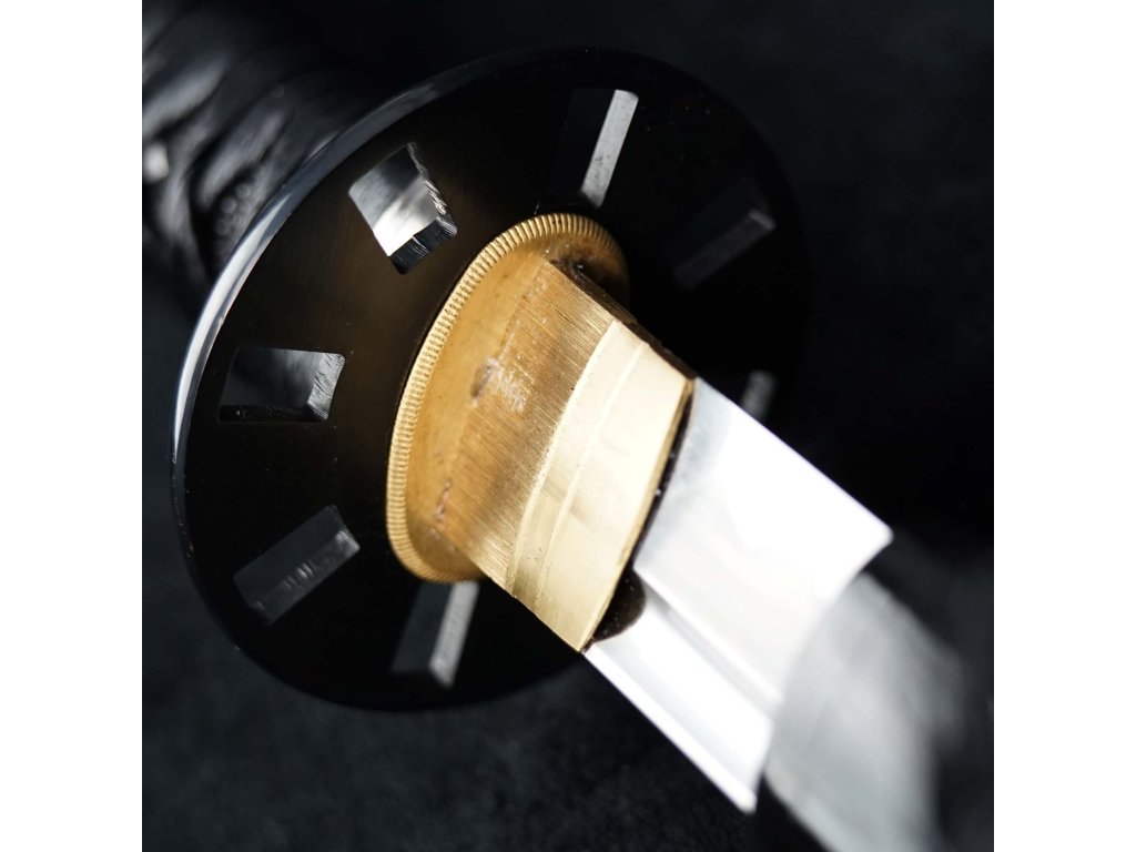 Prémiová replika meče katana Shinken Shapu s čepelí o délce Nagasa 2,52 Shaku (76,5 cm) z uhlíkové oceli AISI 1095, tvrdost ostří hasaki 58 HRC. Diferenciálně tvrzená konfigurace Maru, skutečný Choji Hamon, žlábek Bo-Hi, hrot chu-kissaki a Diamond Shaped Yokote. Ručně leštěná kamenem hazuya pro zrcadlový lesk a žiletkovou ostrost.