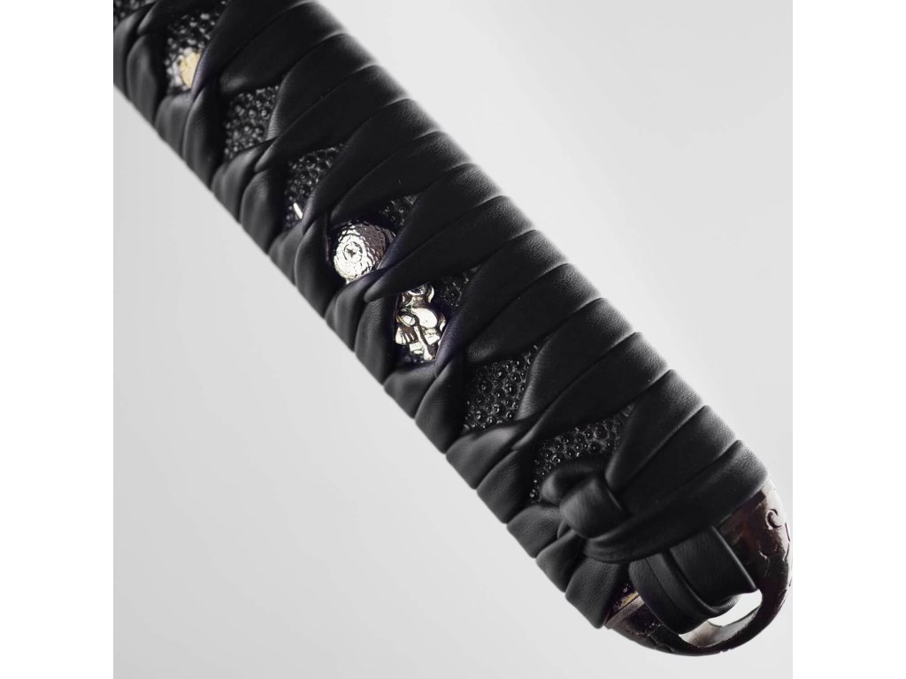 Kovaná čepel shinogi-zukuri z uhlíkové oceli AISI 1095 té nejvyšší kvality. Ocel v monokompositní konfiguraci Maru - diferenciálně tvrzená. Uhlíková ocel AISI 1095 je velmi pevná a skvěle drží ostrost. Čepel se žlábkem bo-hi byla ve finální fázi ručně leštěna kamenem hazuya - tím je dosaženo téměř žiletkového ostří (razor sharp) a zrcadlového lesku. Tato čepel byla vyzkoušena a testována tak, aby odstranila vše co jí stojí v cestě. Sori (zakřivení čepele) je speciálně navrženo tak, aby bylo dosaženo co možná nejjemnějších a nejčistších řezů. Uhlíková monokompozitní ocel AISI 1095 má působivou tvrdost (hasaki) cca 58 HRC - perfektní kombinace této tvrdosti je podtrženo zakřivením čepele Sori, které umožňuje snadné přeseknutí tatami, slaměné rohože, nebo bambusu pro tameshigiri. Full tang konstrukce této čepele výrazně zvyšuje sílu meče. Firma Dellinger se zříká jakékoliv odpovědnosti za zranění a poškození vzniklá při použití. Schraňujte meč mimo dosah dětí! Jakákoliv manipulace se samurajským mečem je na vaší vlastní odpovědnost. Nezapomeňte, že máte ve svých rukou smrtelnou zbraň!
