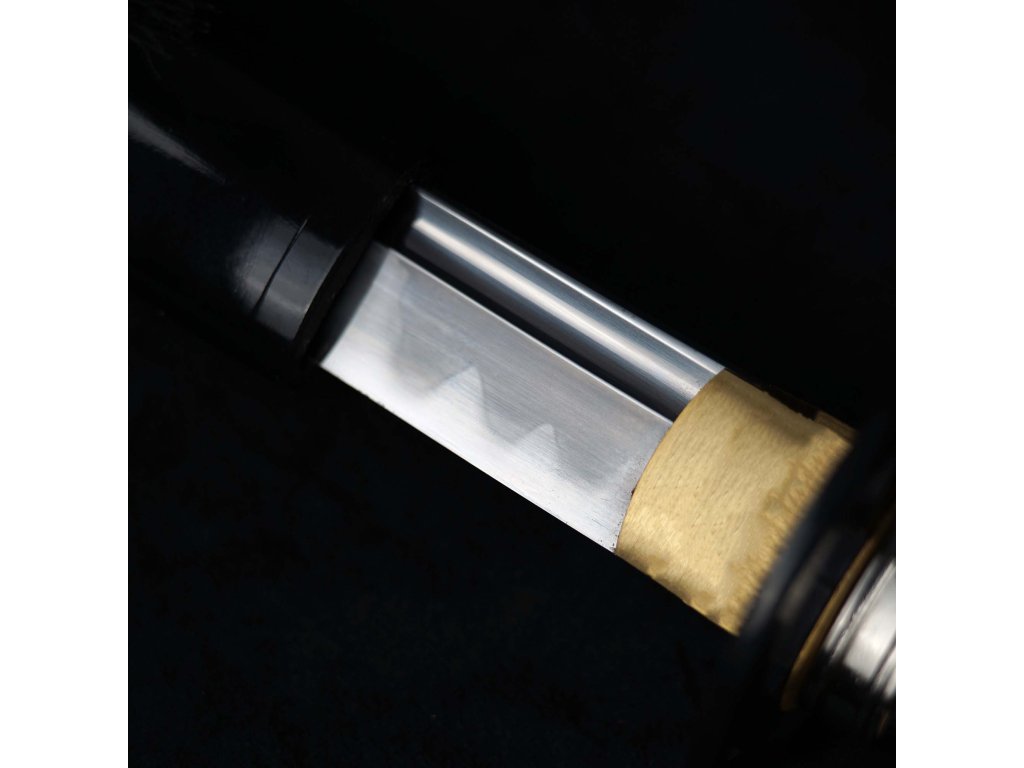 Prémiová replika samurajského meče Shoden Shapu s čepelí z uhlíkové oceli AISI 1065 (monosteel) nabízí se skutečným choji hamon, ručně leštěná kamenem hazuya do zrcadlového lesku, tvrdost ostří 52 HRC a žlábkem bo-hi. Hrot čepele shinogi-zukuri a o-kissaki se skutečným Diamond Shaped Yokote zdůrazňuje tradiční řemeslné zpracování. Ideální na iaido i sekové zkoušky tameshigiri.