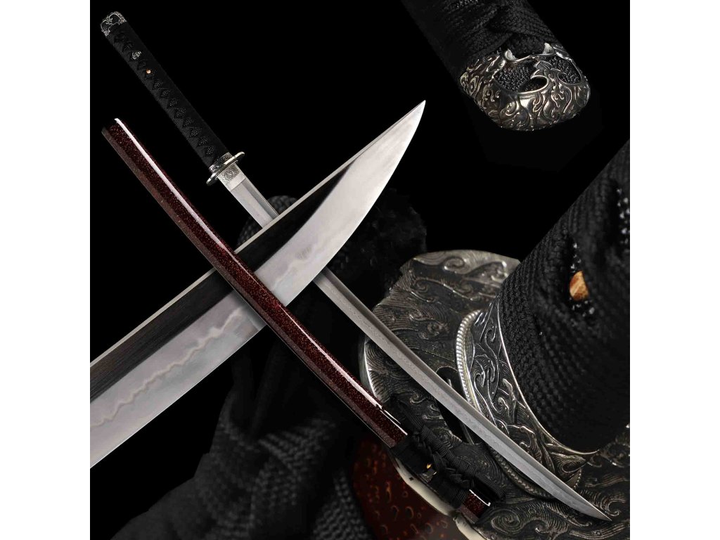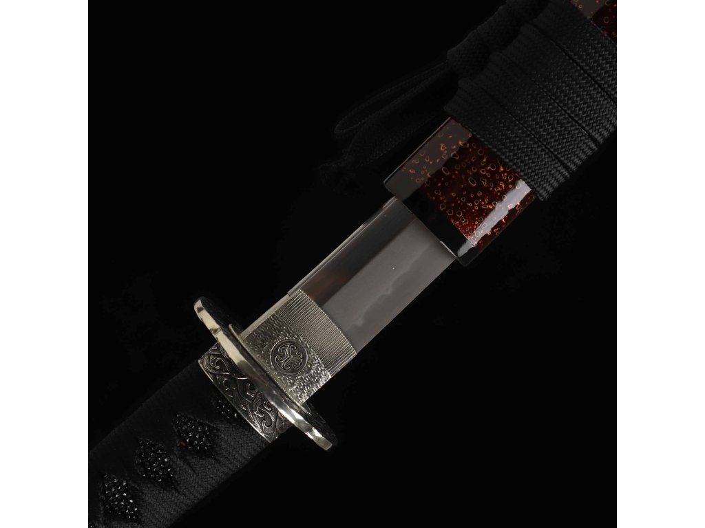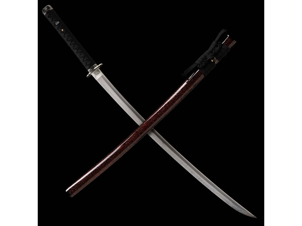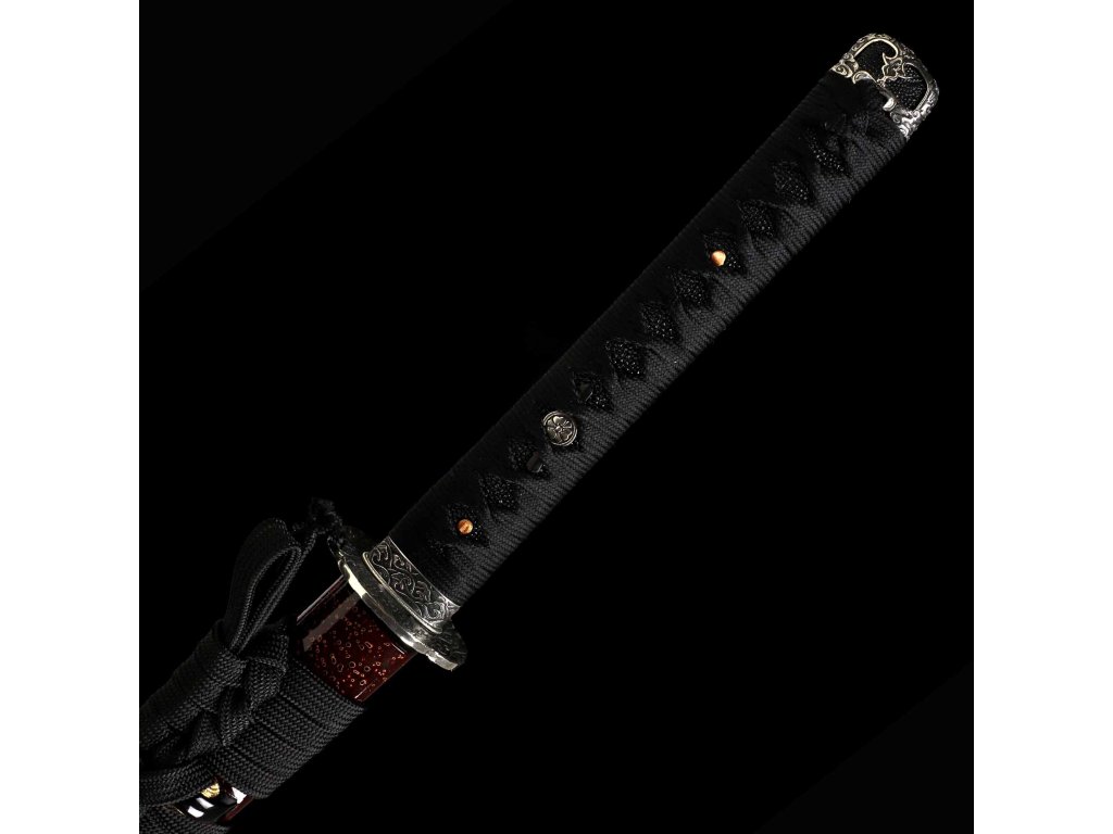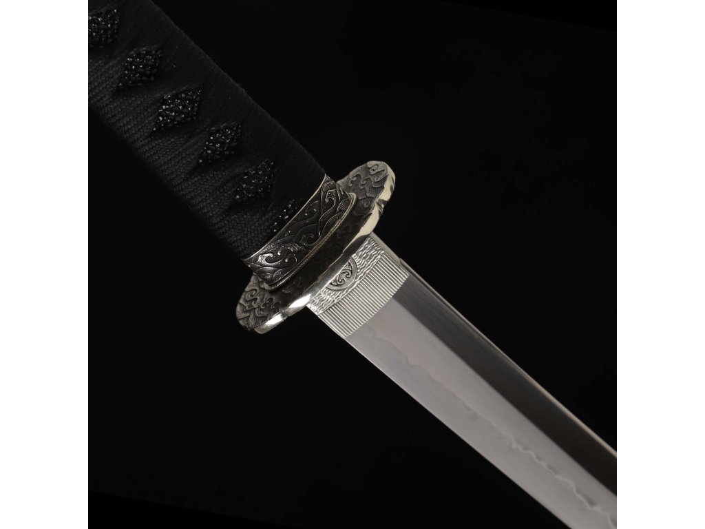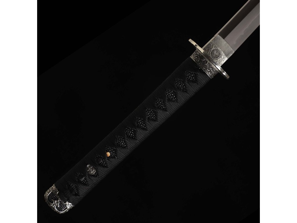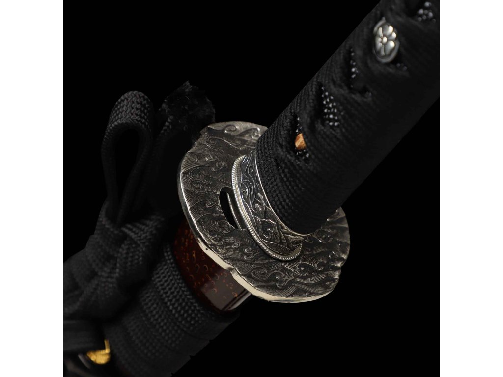 katana Silver Waves Japanese Sword - T-10 Carbon Steel, Real Choji Hamon, Yokote