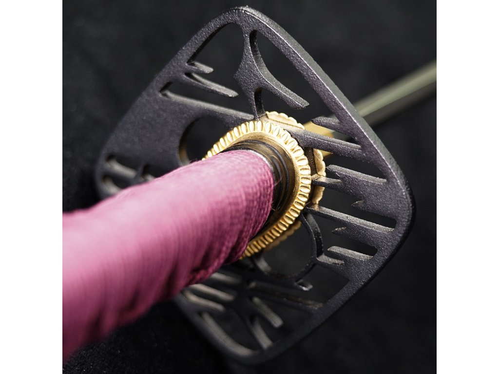 Funkční replika meče katana Supina s čepelí z uhlíkové oceli AISI 1095 s reálným hamonem Choji, tvrdost ostří 58 HRC, délka čepele Nagasa 2,32 Shaku. Hrot chu kissaki, Diamond Shaped Yokote. Rukojeť s rejnočí kůží a fialovým opletem, černá lesklá členěná saya s fialovým opletem. Kurigata, Koiguchi a Kojiri z pravého buvolího rohu medové barvy. Katana je ideální jako dekorace nebo k aktivnímu nácviku bojového umění.