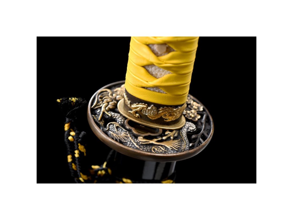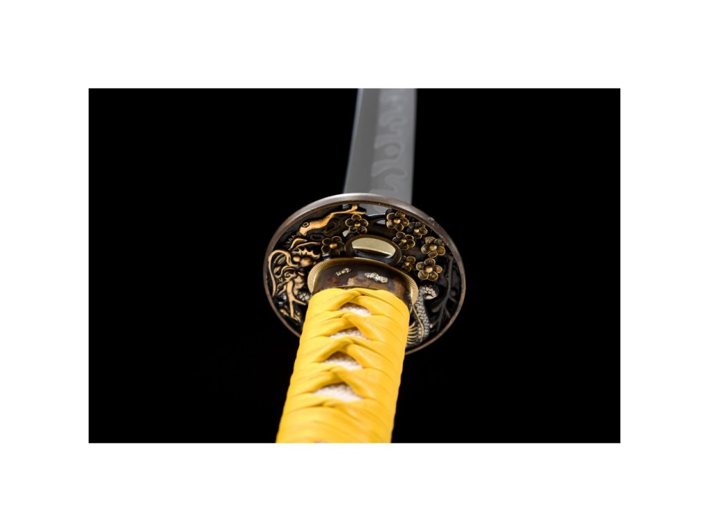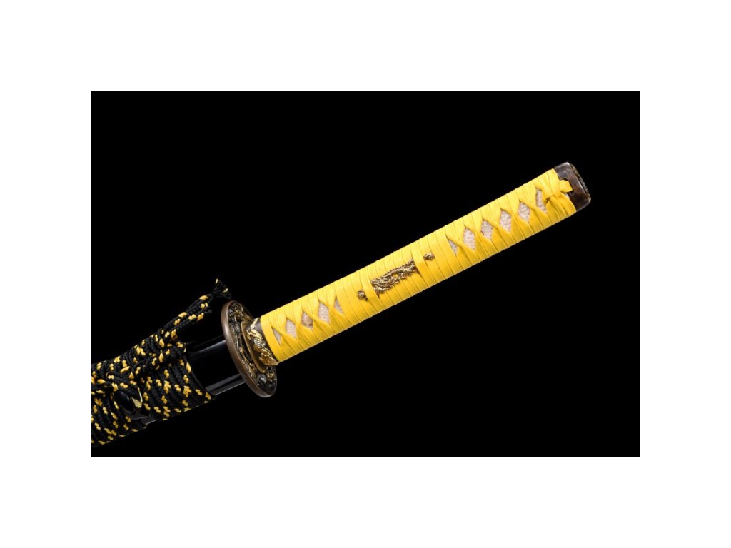 • Tsuka (rukojeť) - dřevěné jádro, potažena pravou rejnočí kůží (Samegawa), se žlutou koženou omotávkou ITO. Čepel zajištěna 2 bambusovými kolíky "mekugi". Z každé strany je ozdobné menuki (ornament).