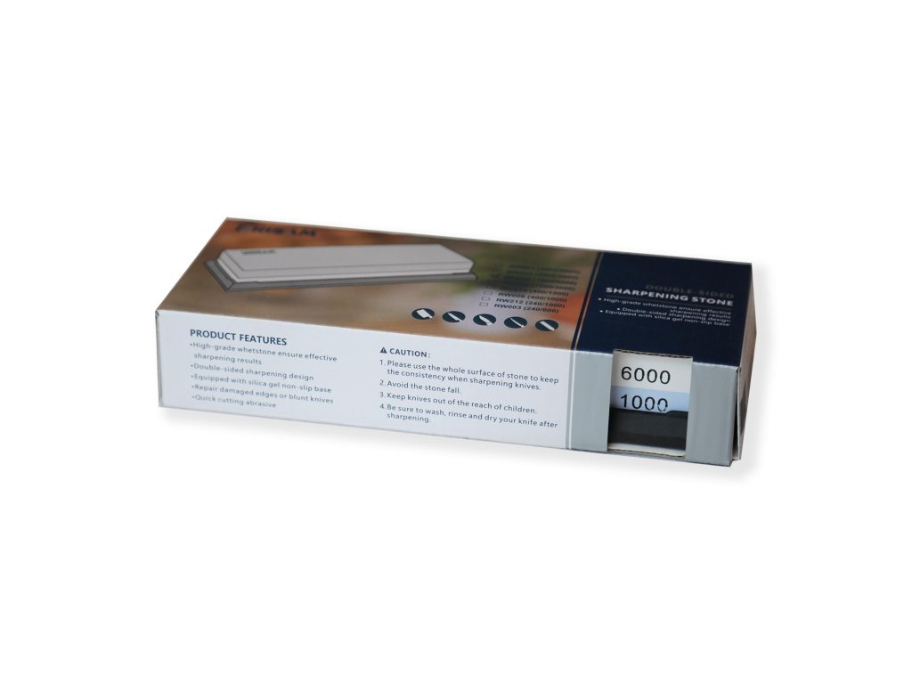 Kombinovaný brusný kámen Risam s velmi rychlým brusným a leštícím efektem. Kámen je vyrobený ze syntetického Korundu (oxid hlinitý). Brusný kámen je dodáván s gumovou protiskluzovou podložkou. Hrubost JIS #1000/#6000.